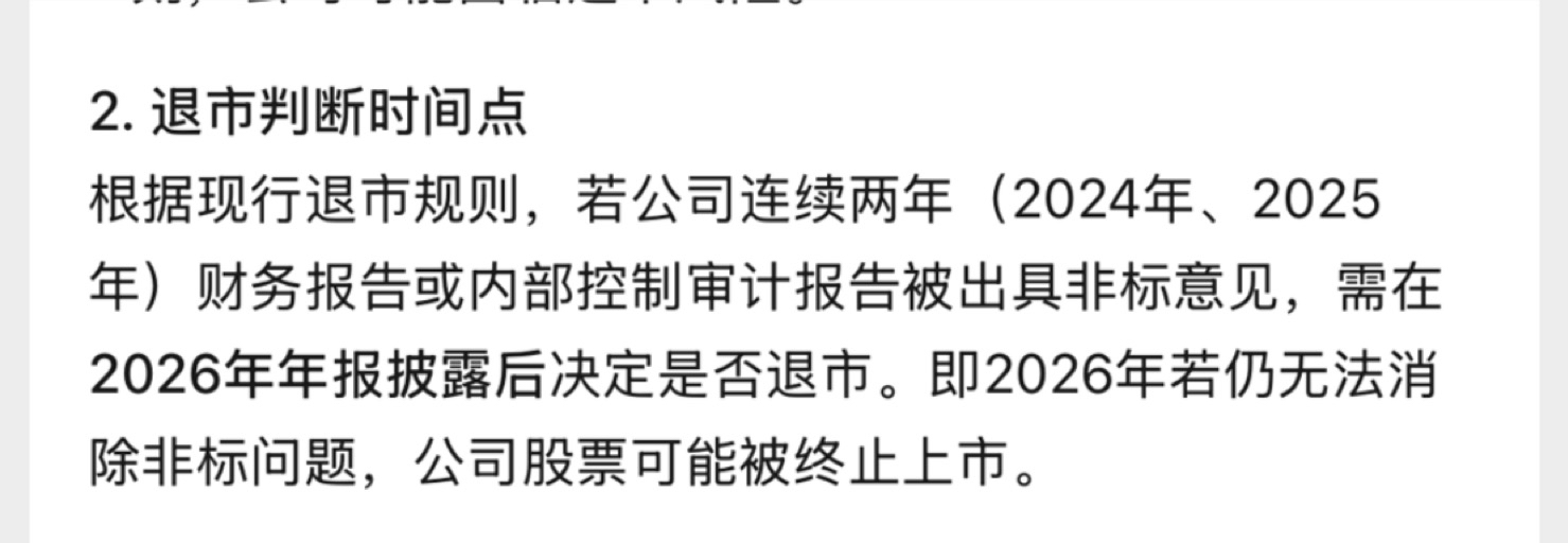 即便连续两年非标,退市也要看2026年能否改善才会退市啊