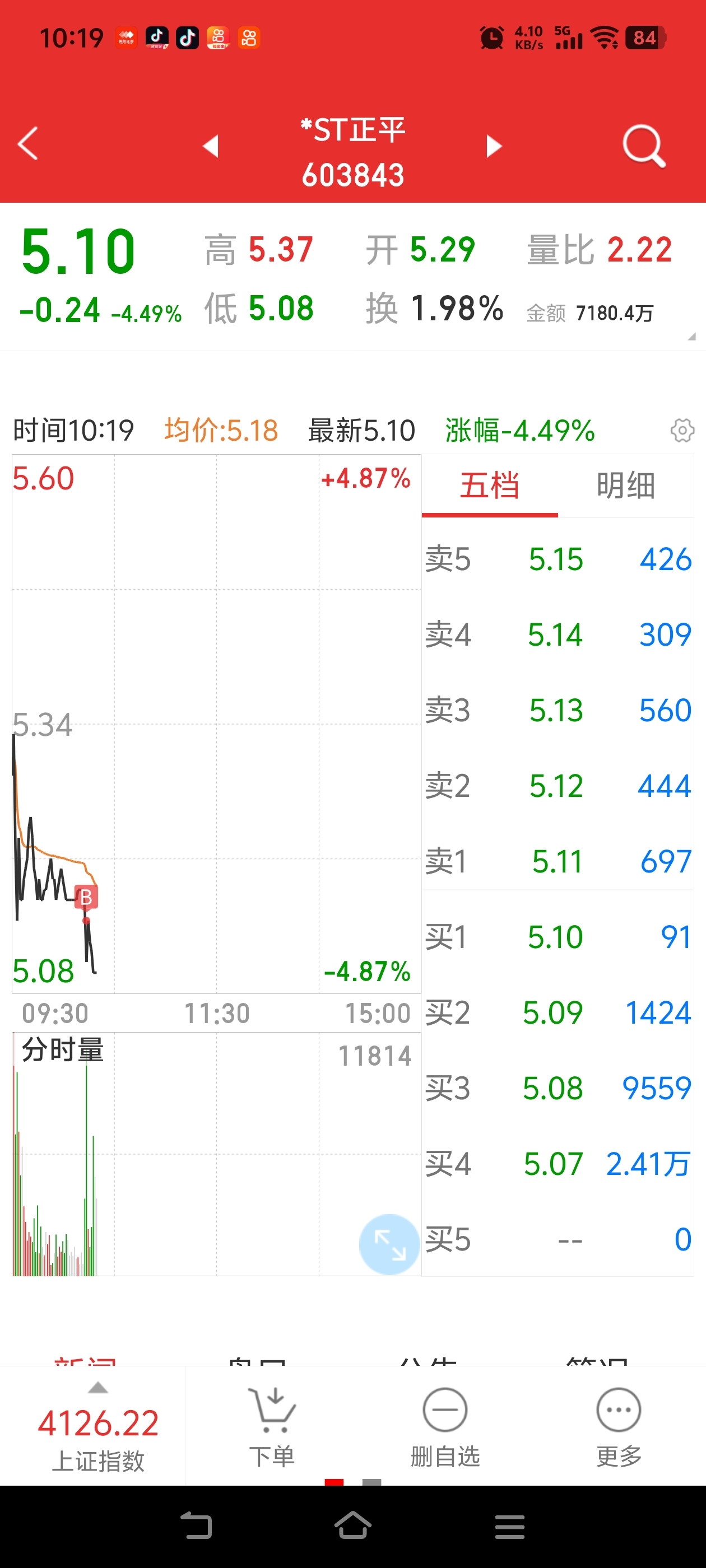 $*ST正平(SH603843)$ 加仓了,砸吧