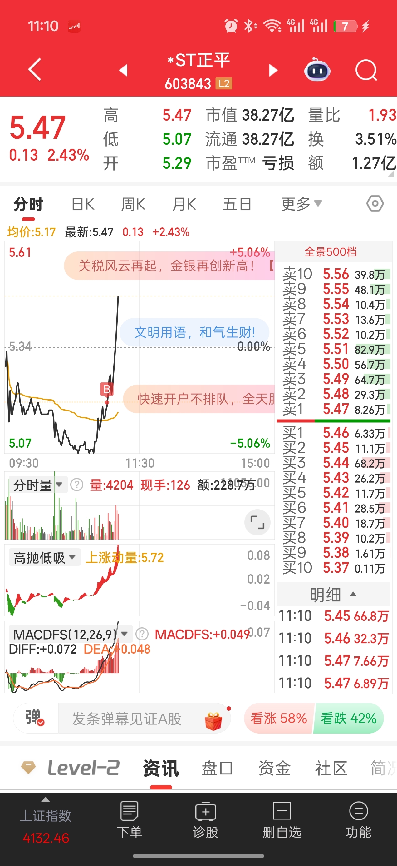 $*ST正平(SH603843)$ 我回来了,你我有缘