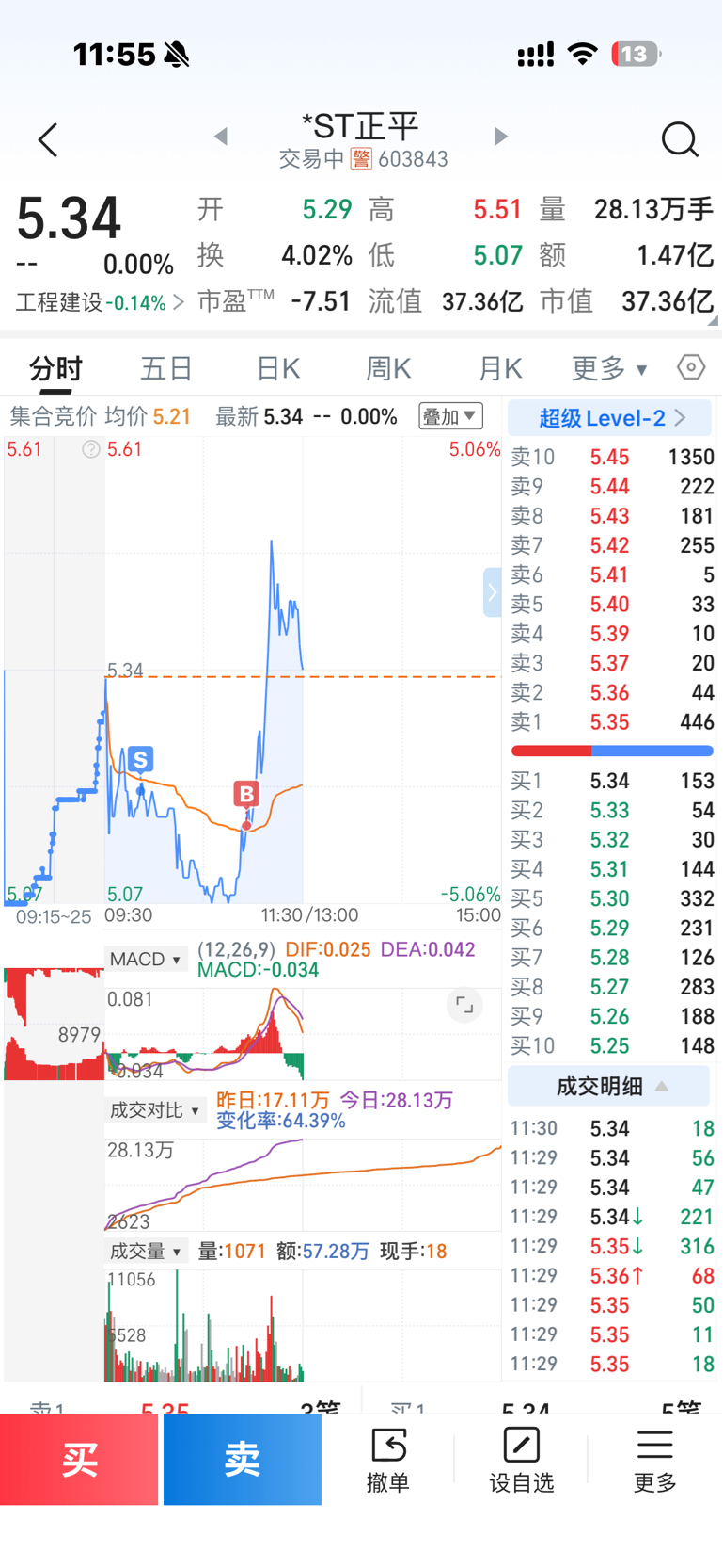 $*ST正平(SH603843)$ 果然我一卖就涨