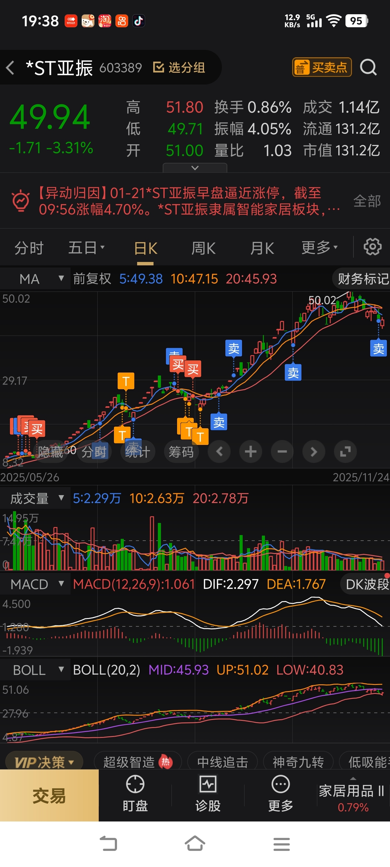 $*ST正平(SH603843)$ 想起了买亚振的时候赚翻了,希望正平也能这样走妖