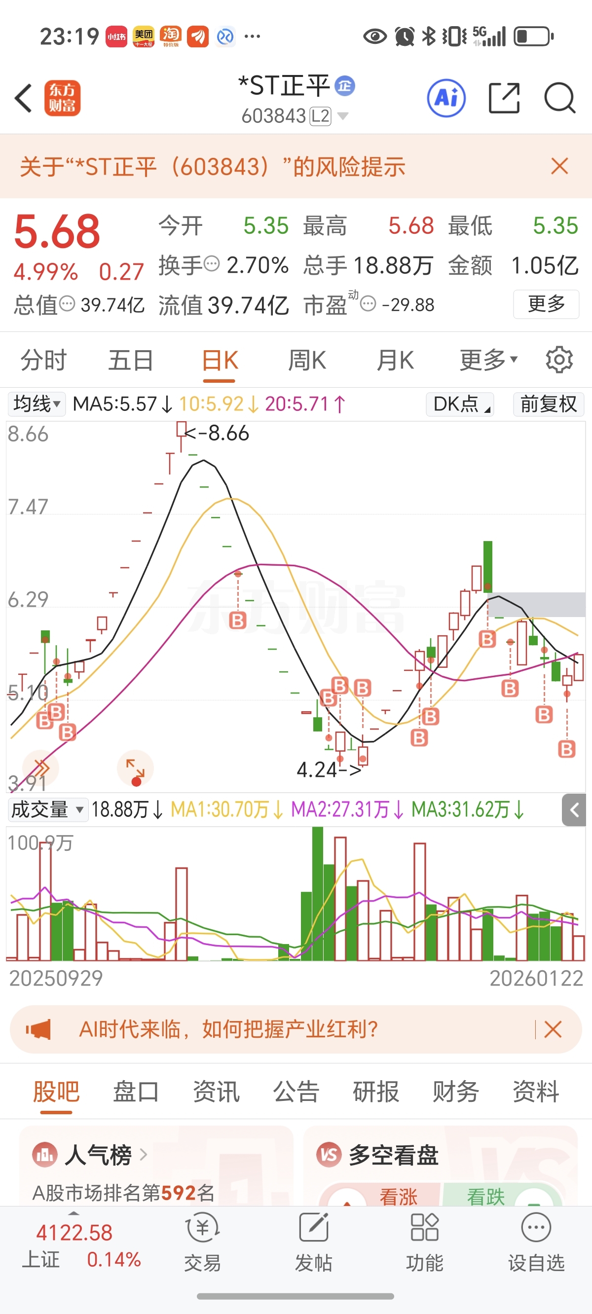 $*ST正平(SH603843)$ 要不要做波段啊,仓位越买越重,还不赚钱,其他的都转了70个点了。