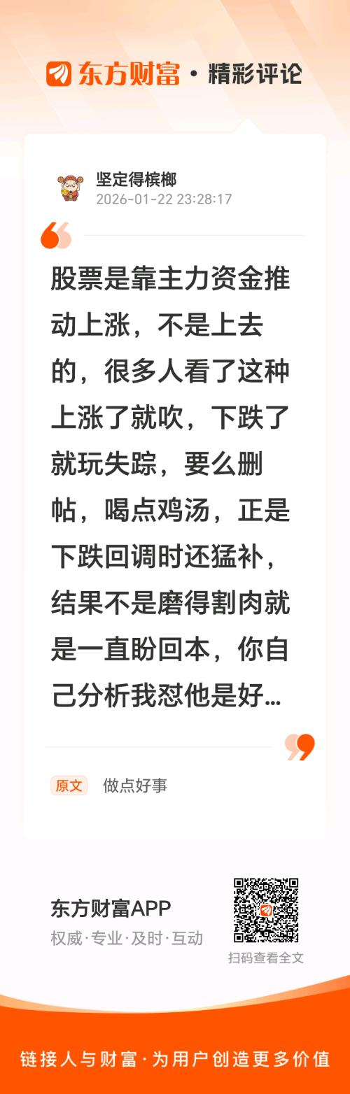 可惜啊,你骂的是你自己,都对号入座了。//@坚定得槟榔 :股票是靠主力资金推动上涨,不是上去的,很多人看了这种上涨了就吹,下跌了就玩失踪,要么删帖,喝点鸡汤,正是下跌回调时还猛补,结果不是磨得割肉就是一直盼回本,你自己分析我怼他是好意还是恶意