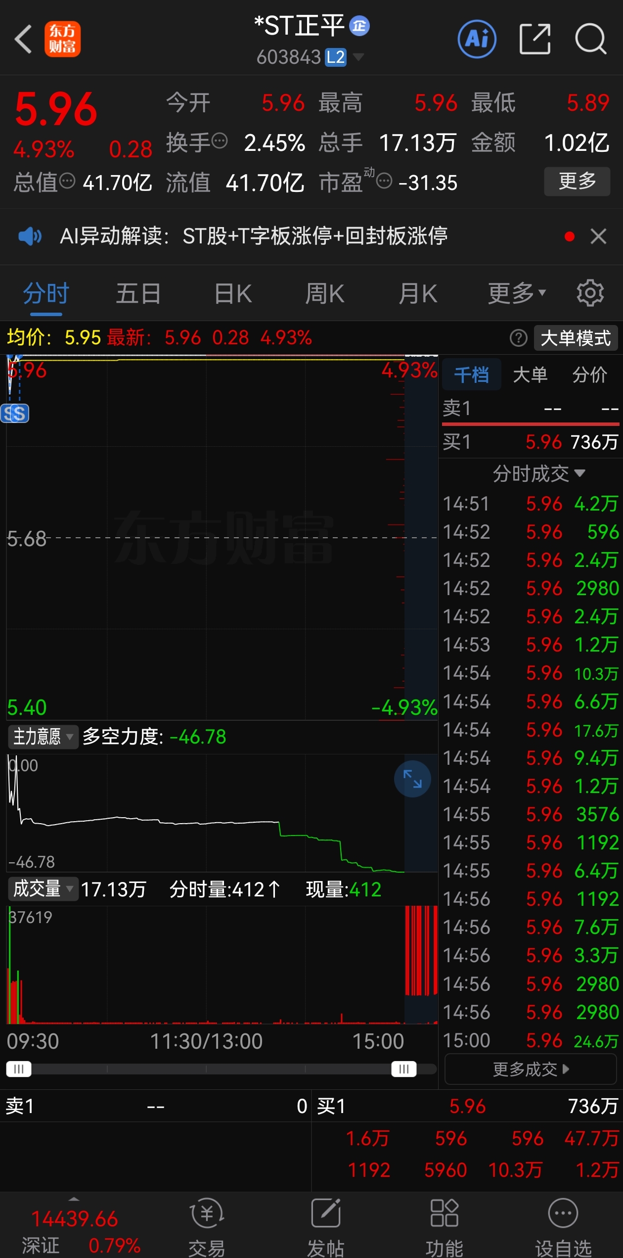 $*ST正平(SH603843)$ 今天炸板把我震出1/3仓位!
