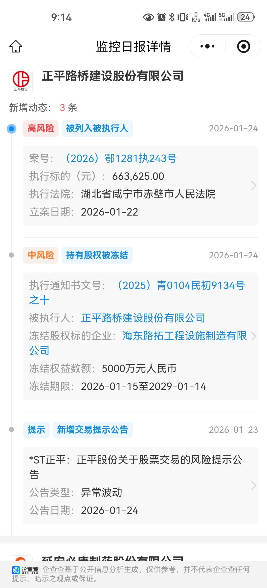 $*ST正平(SH603843)$ 开始青海省外的案子