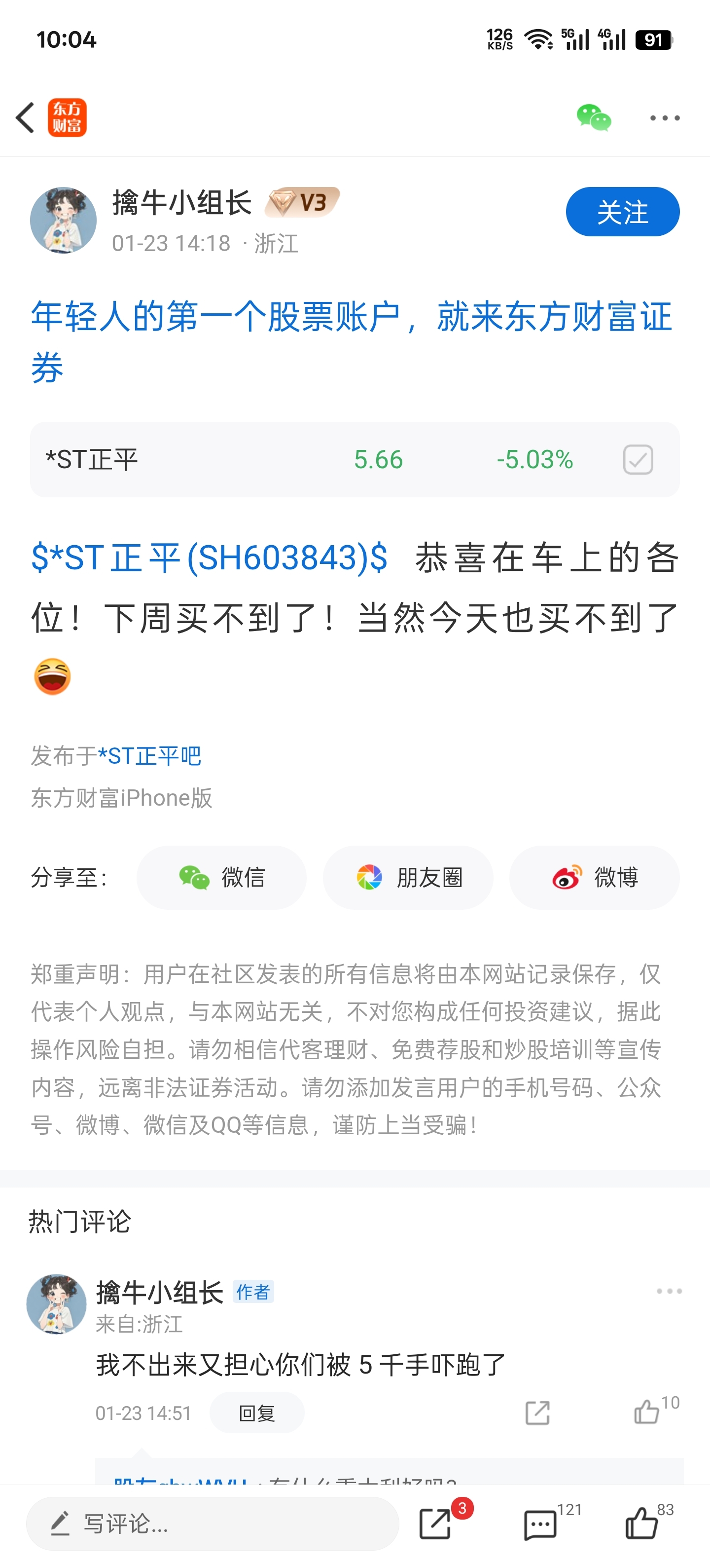 $*ST正平(SH603843)$ 多少被这勾托忽悠进去的,好久没见过这么敬业的托了,看了下他的评论区,跟船销窝点一样,至少是个30人的团队,每天风雨无阻发两三个帖子唱多,生怕韭菜跑出去了一个,这不就是在上班吗,真有这么好的挣钱机会人家会告诉你?哪个不是闷身发大财