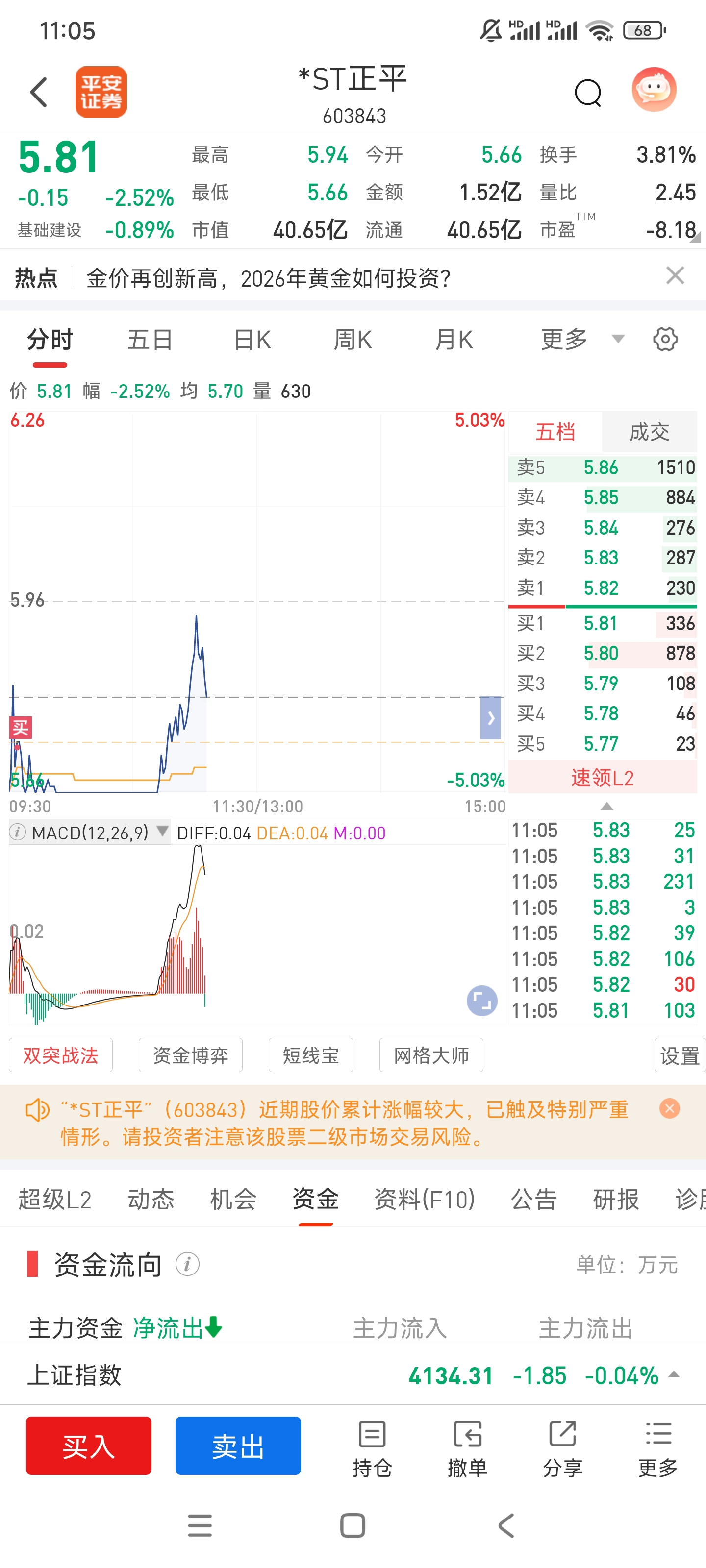 $*ST正平(SH603843)$ 没钱了,买了一点点