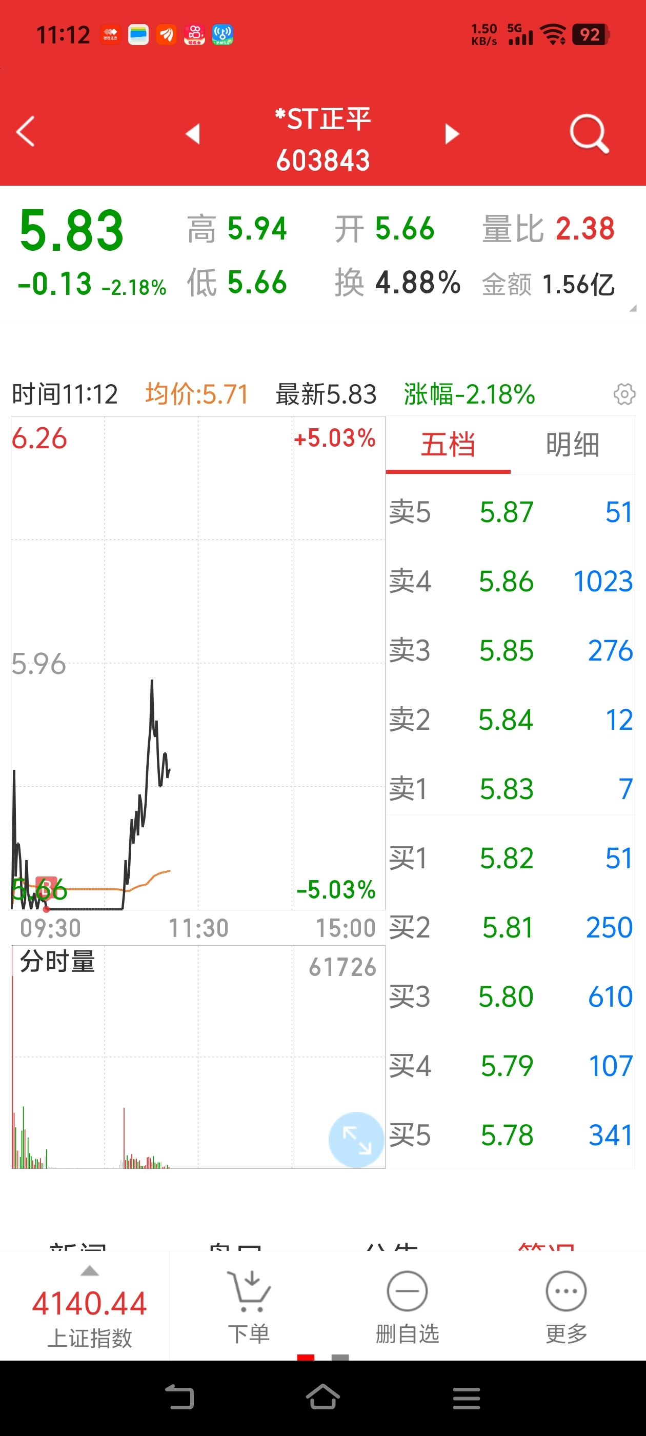明天又加仓正平,希望万方早日能放我出来,我要把子弹打进正平