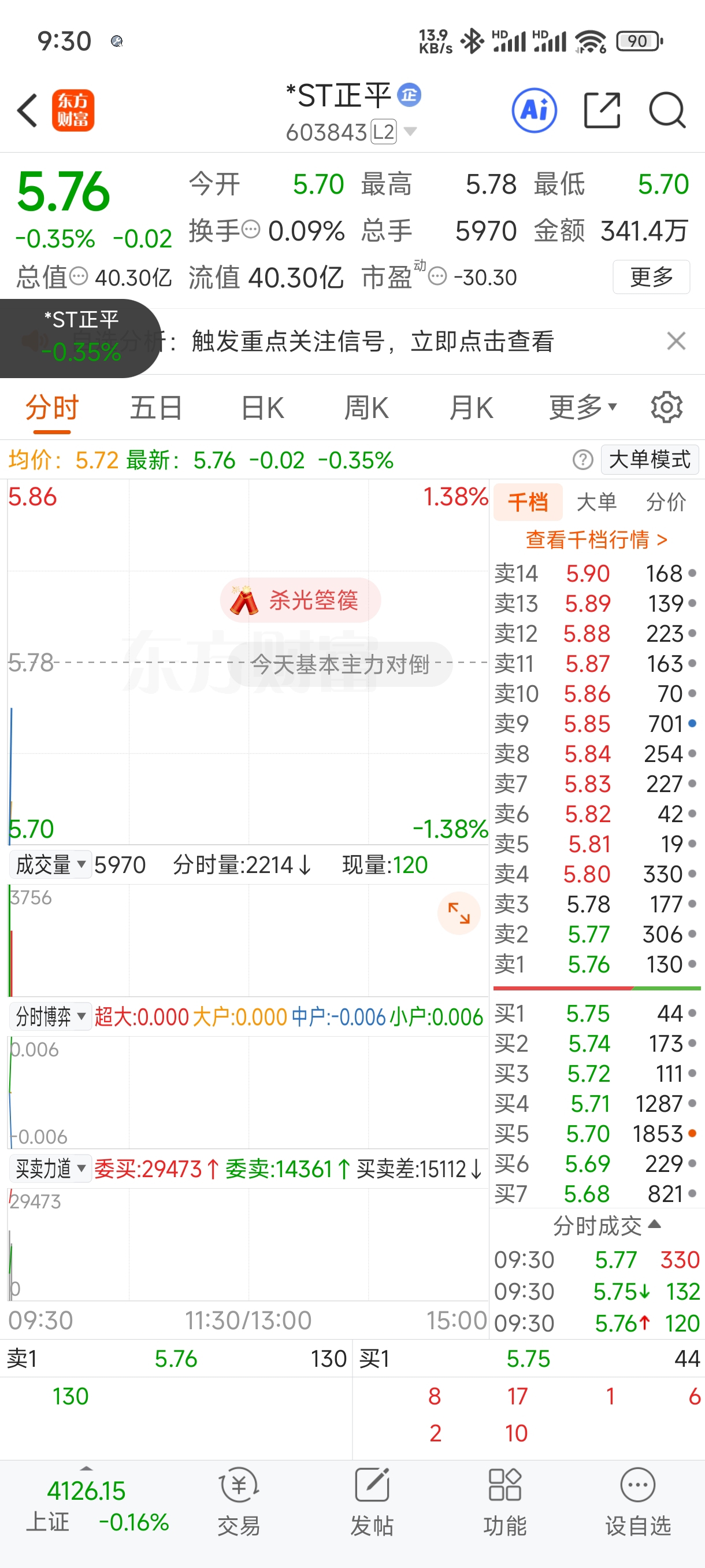 $*ST正平(SH603843)$ 本来没有多大抛压,但是昨天那个万手压单又来了,真的太恶心了