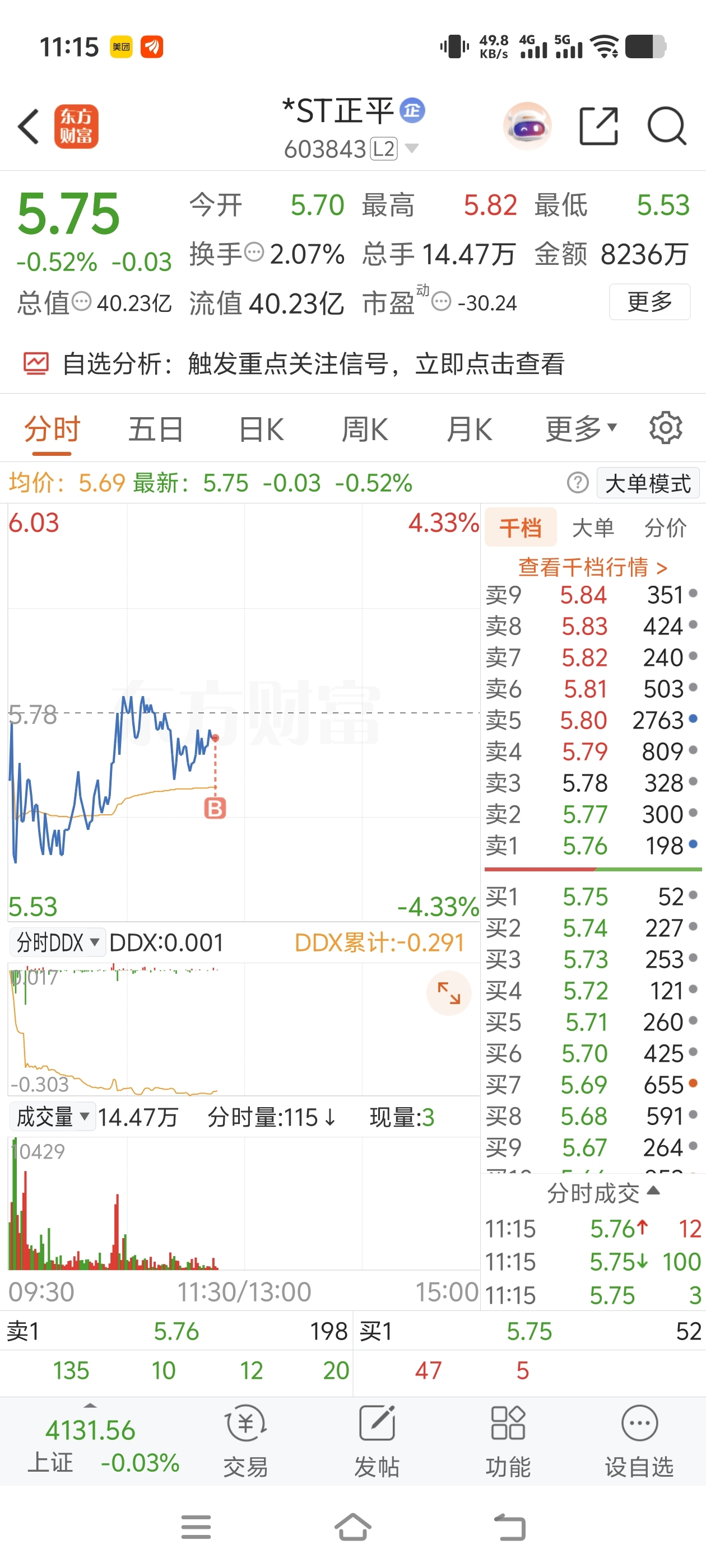 $*ST正平(SH603843)$ 今天睡过头了。