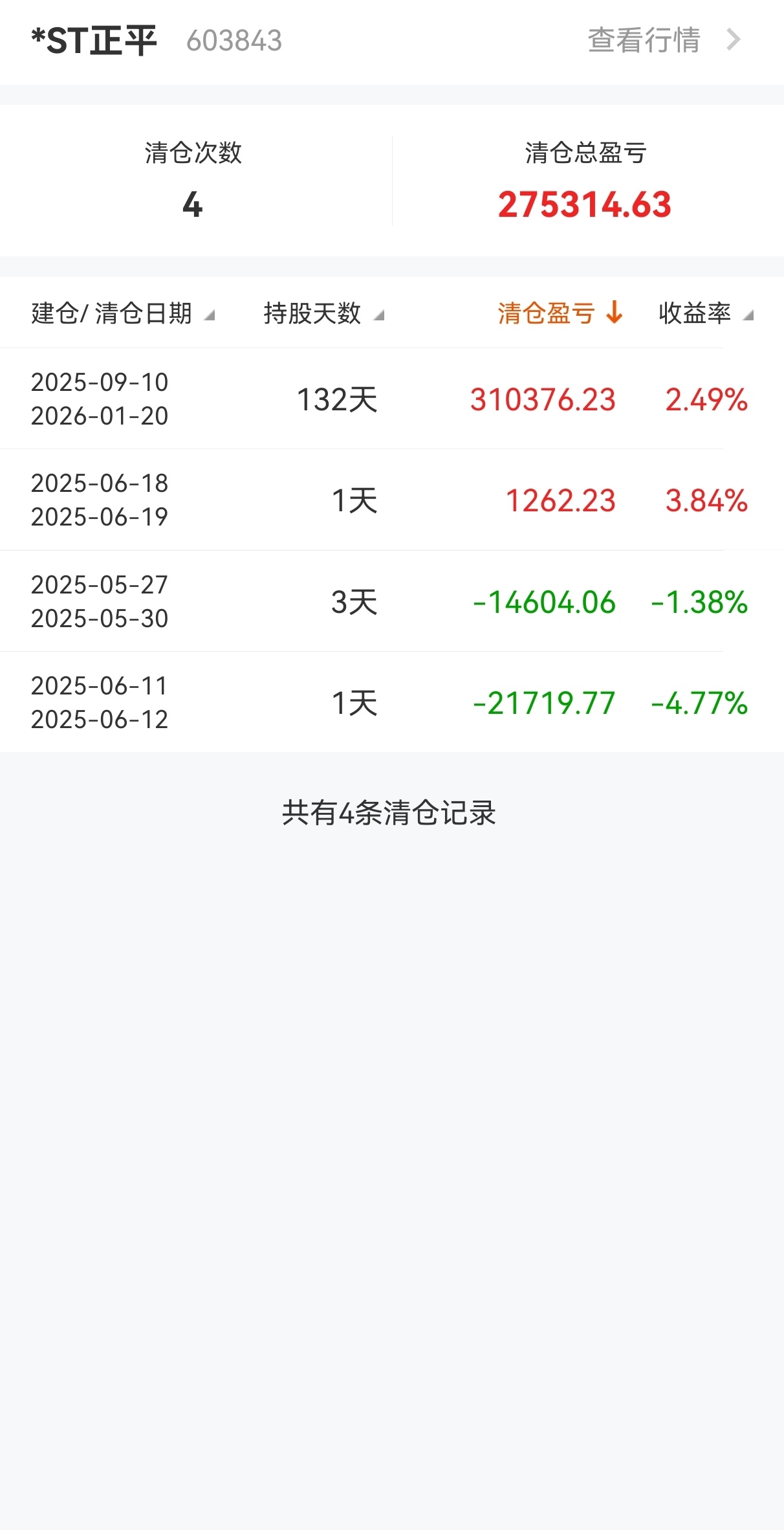 $*ST正平(SH603843)$ 我是正平的死多头,也吃过肉,扛过14个跌停一股没有减。但利润回撤不少。但凡有一点希望我也会继续坚守。但听说希望越来越小了,生死攸关。希望坚守者好运吧