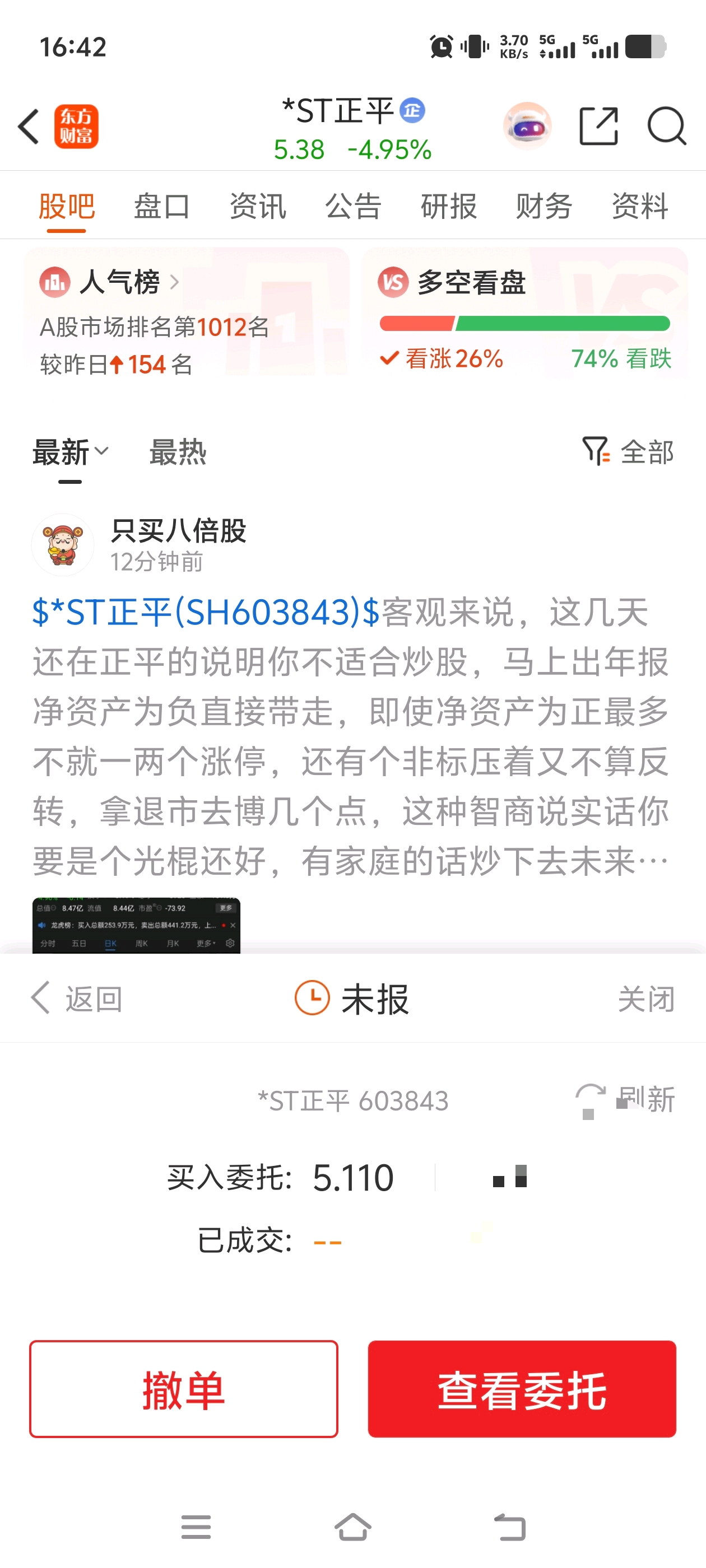 $*ST正平(SH603843)$ 永远不全仓,进可攻退可守!明天继续,谢谢!
