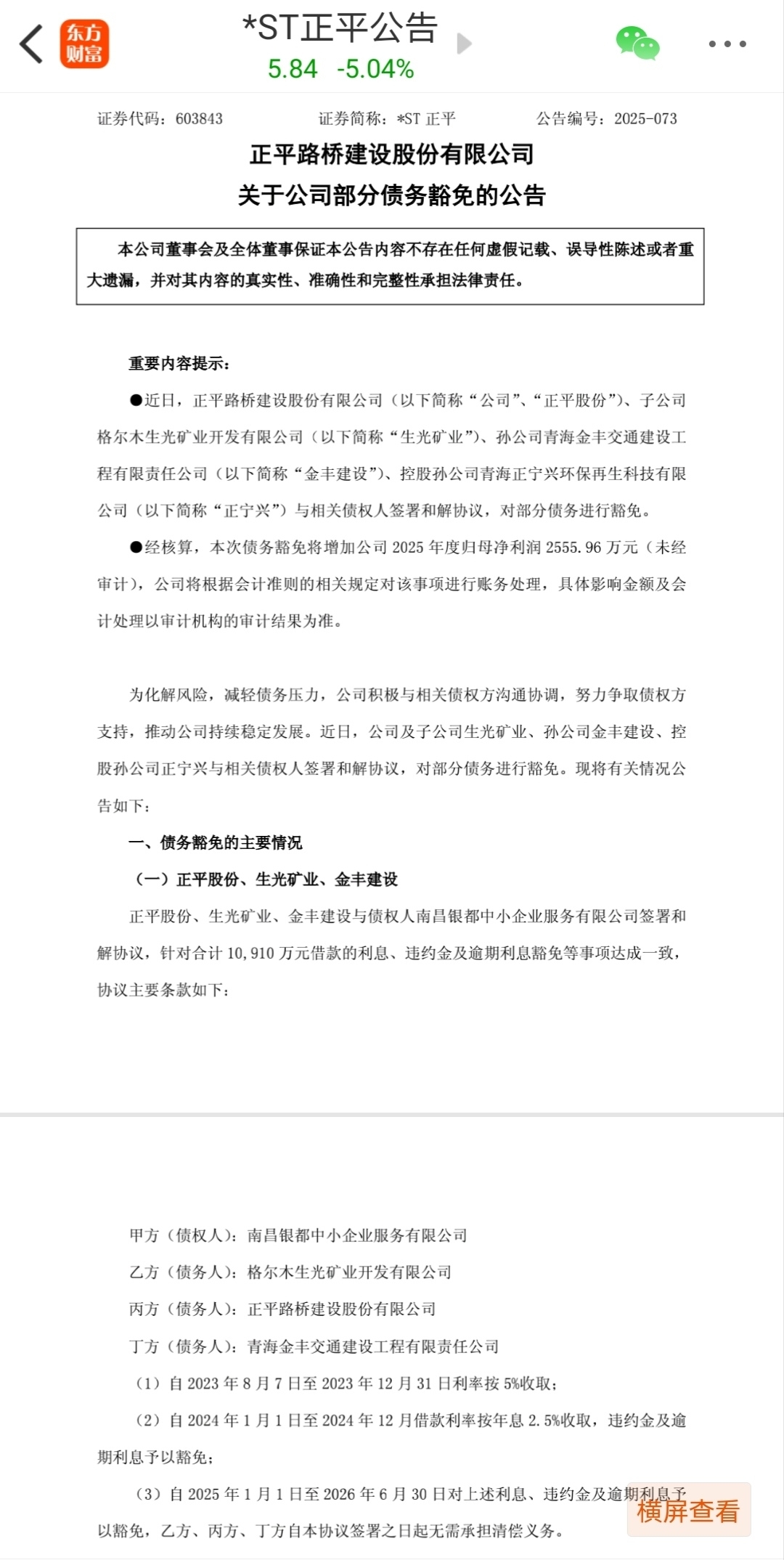 $*ST正平(SH603843)$ 这个是2025年10月31日的公告,南昌银都的债务豁免,一个月后南昌就申请重整,有谁知道为何要这个时候主动豁免两千多万?是不是已经在搞净资产问题了