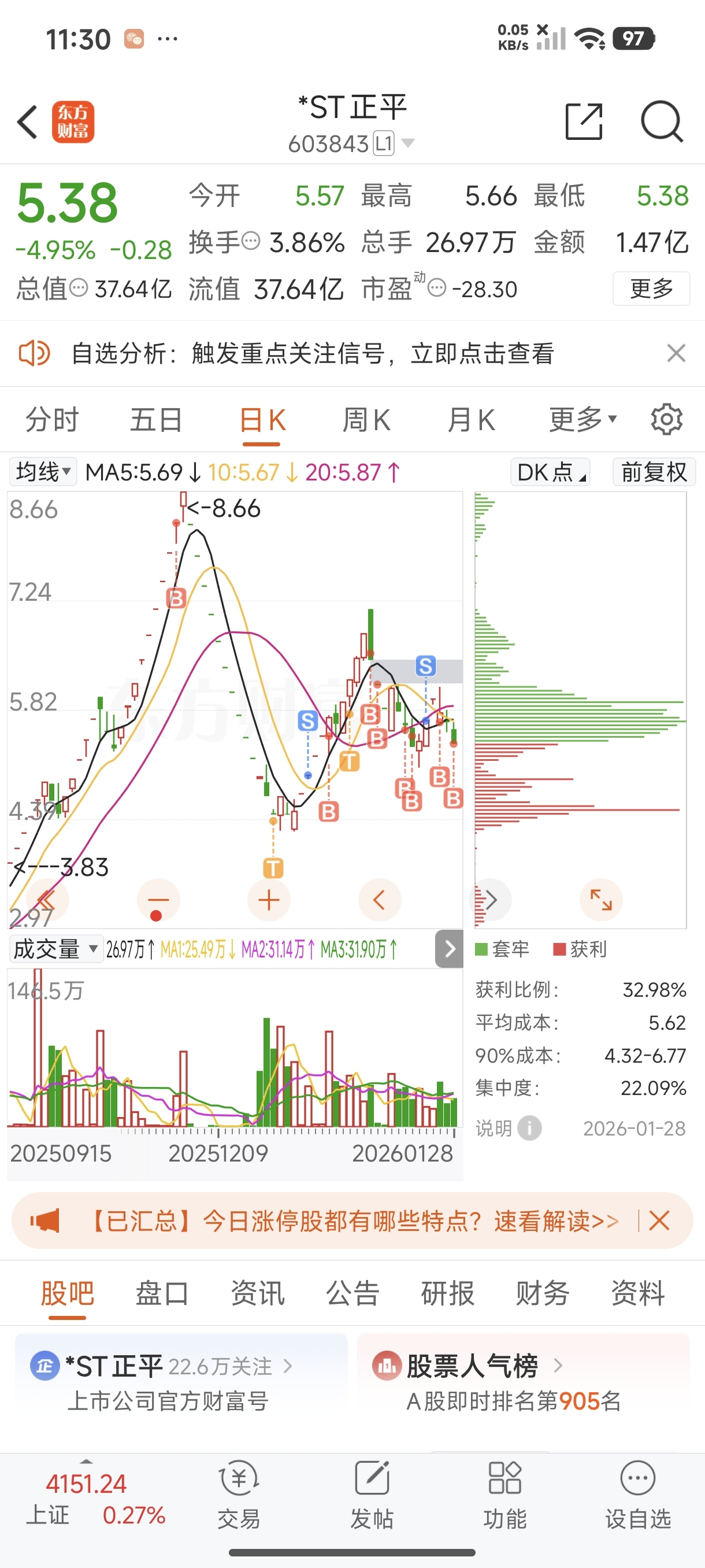 $*ST正平(SH603843)$ 重仓你,我的宝贝
