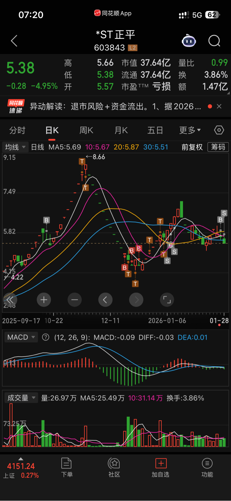 $*ST正平(SH603843)$ 下周黄金都上6000了,黄金牛市不去留在这里天天跌有啥用,后面大把机会回来这里