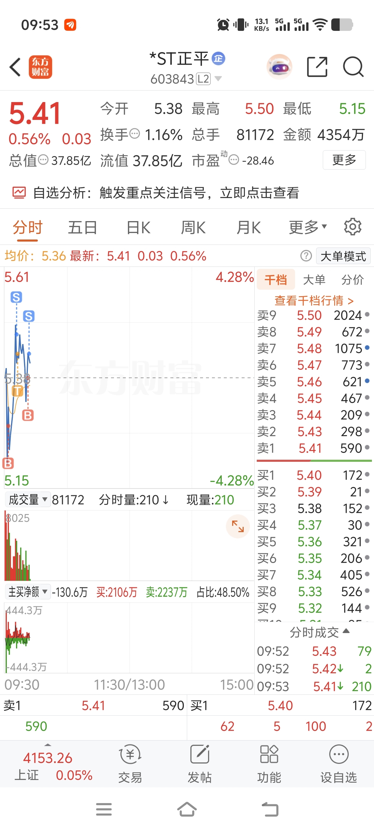 $*ST正平(SH603843)$ 所以不要手下留情!就是不出底仓,哈哈。你咬我!