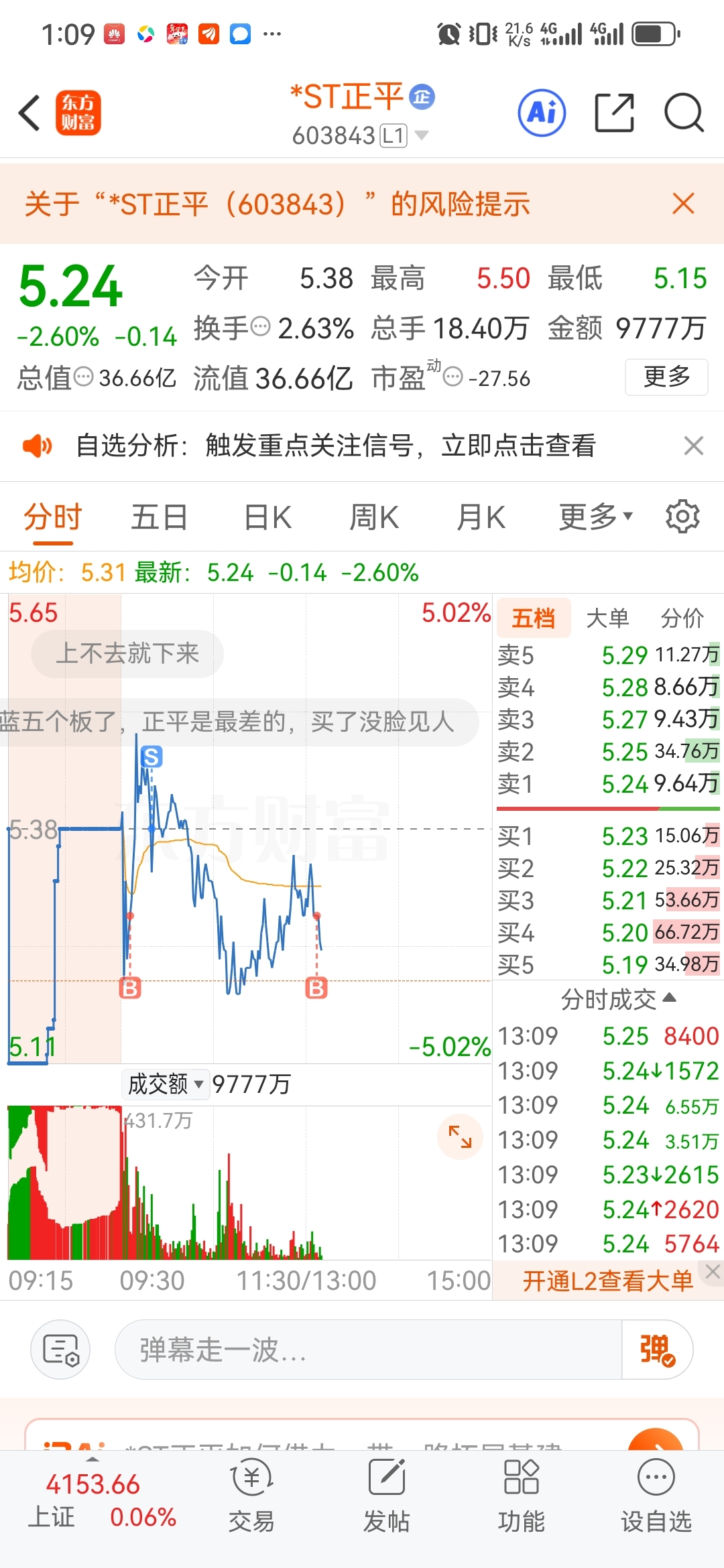 $*ST正平(SH603843)$ nmd,这票确实恶心。早上加仓的上不去就又出了进了沧州,下午加了,这还是这鬼样子