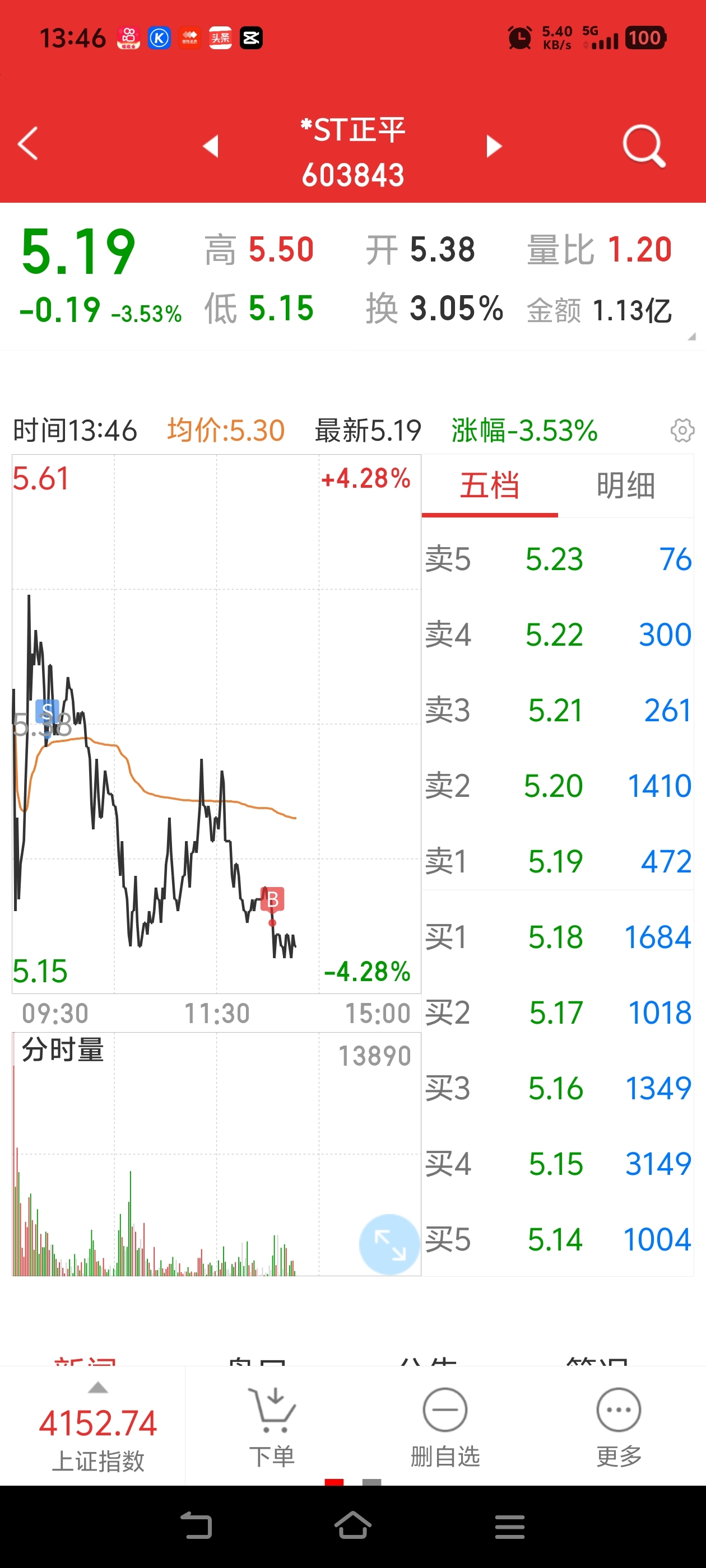 $*ST正平(SH603843)$ 不知道怎么操作了