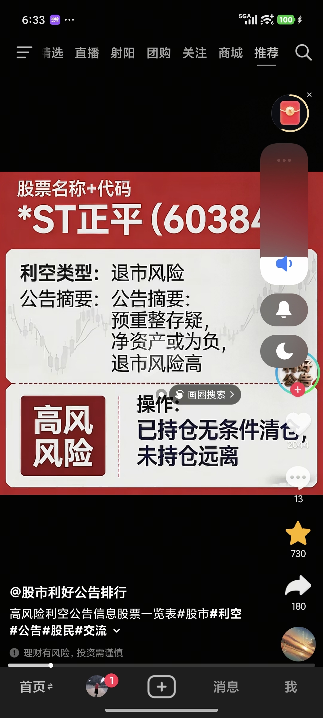 $*ST正平(SH603843)$ 买过这只股,几天时间赚1千多出来了,刚刷到这股的消息,不知是好是坏?