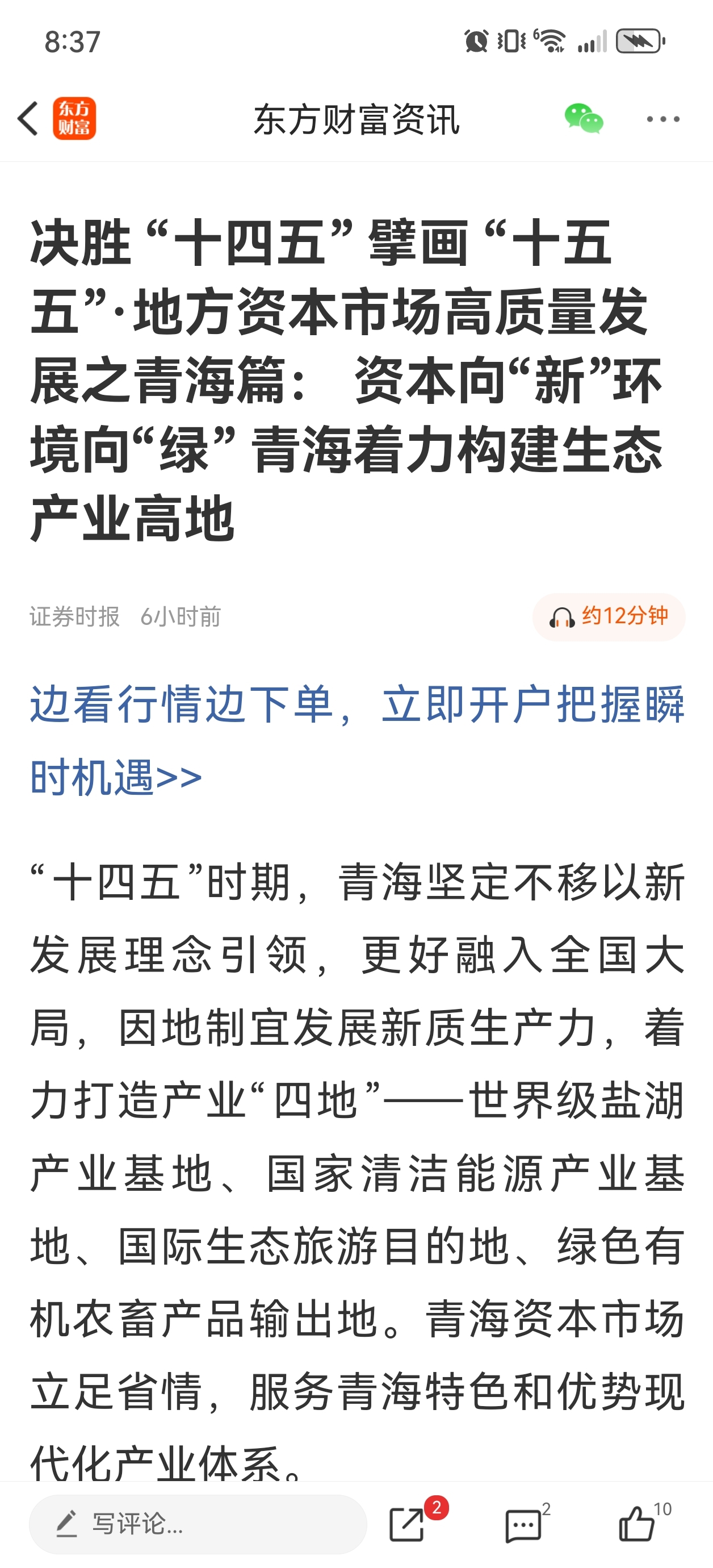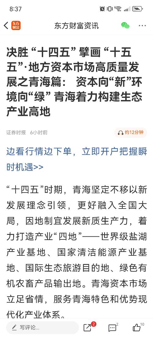 记者注意到,青海所有上市公司均建立了环境保护机制,环保投入累计超过40亿元,生态保护的“绿水青山”持续转化为高质量发展的“金山银山”,打造生态文明高地正成为青海资本市场共识。