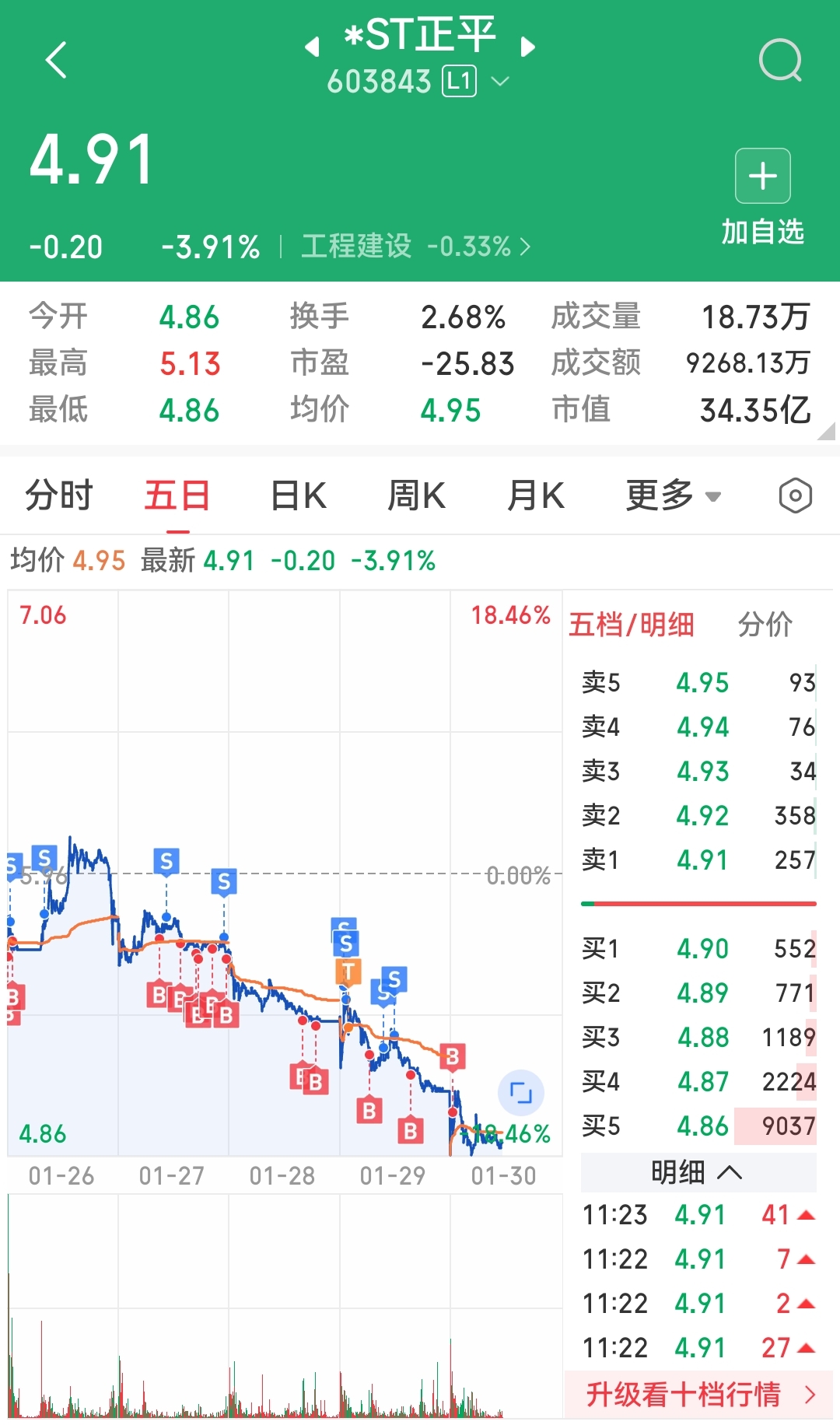 $*ST正平(SH603843)$ 多头们稍安勿躁,下午主力很有可能拉红!