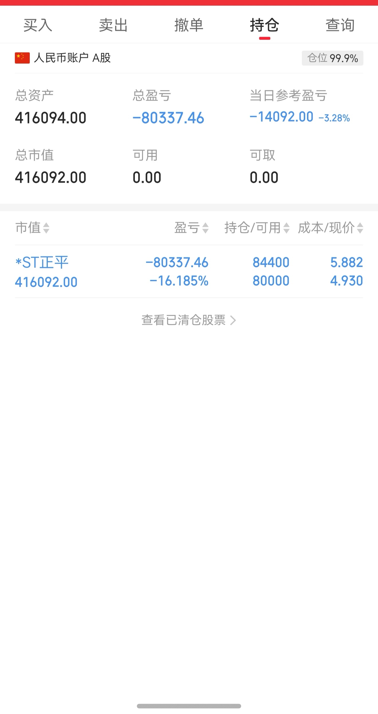 $*ST正平(SH603843)$ 高位8.6进加到全仓,大部分还是贷款加仓的