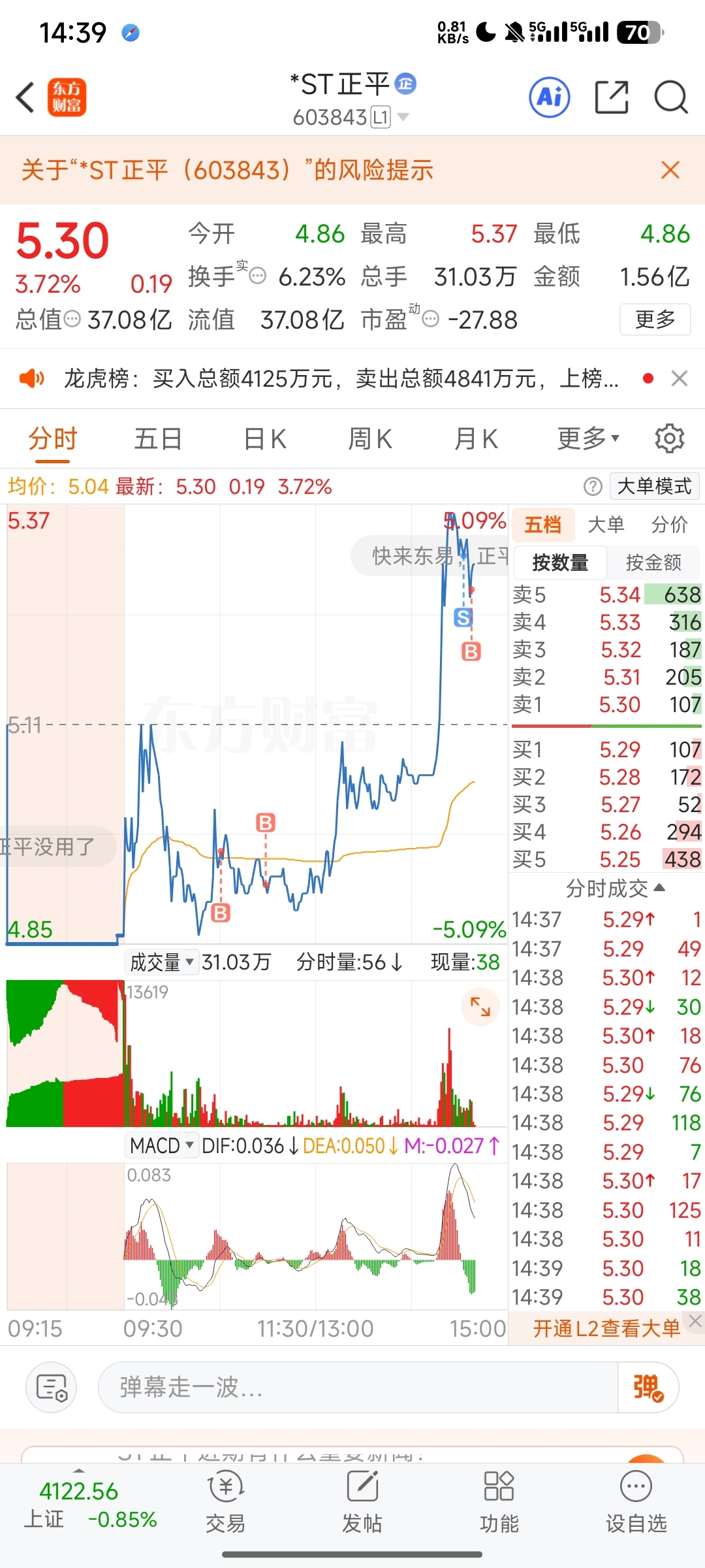 $*ST正平(SH603843)$ 别怪我做T,一个点也差不多一千快了