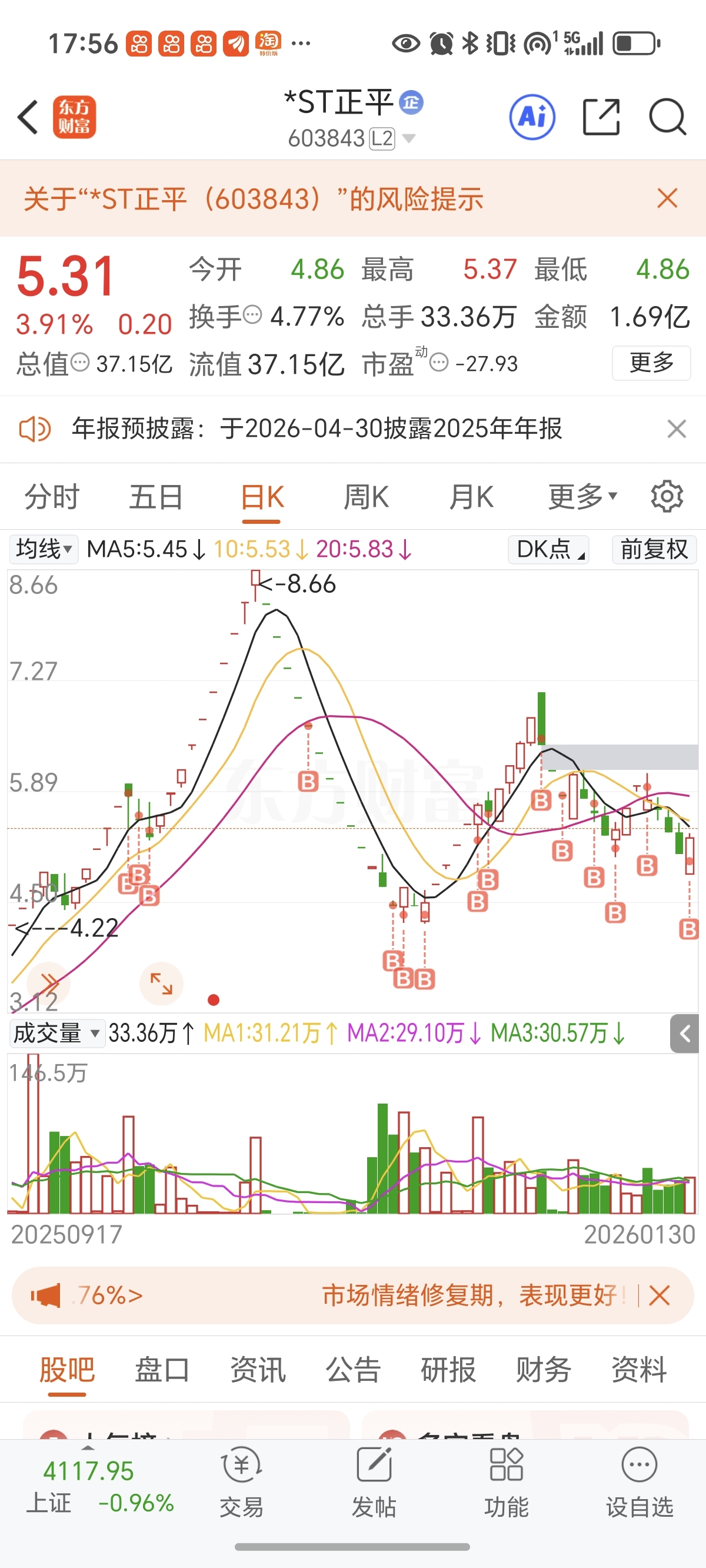 $*ST正平(SH603843)$ 管不住想买的冲动,没钱去借钱买,大家监督我,不要让我买了
