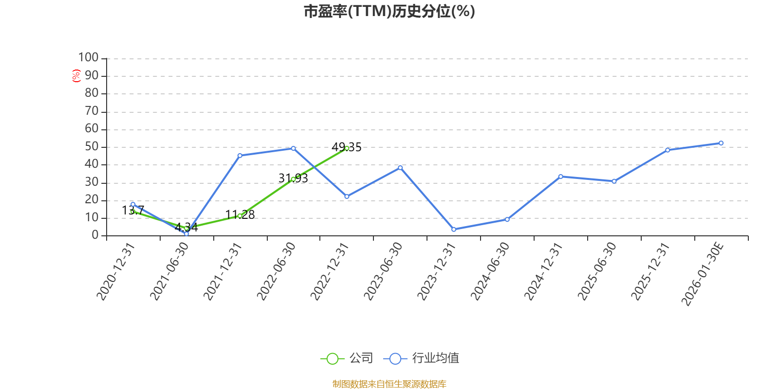以本次披露业绩预告均值计算,公司近年市盈率(TTM)图如下所示: