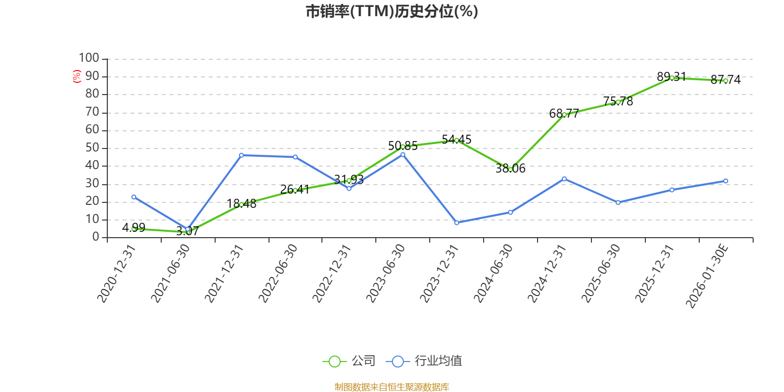 文中市盈率和市销率采用TTM方式,即以截至最近一期财报(含预报)12个月的数据计算。市净率采用LF方式,即以最近一期财报数据计算。三者的分位数计算区间均为公司上市以来至最新公告日。