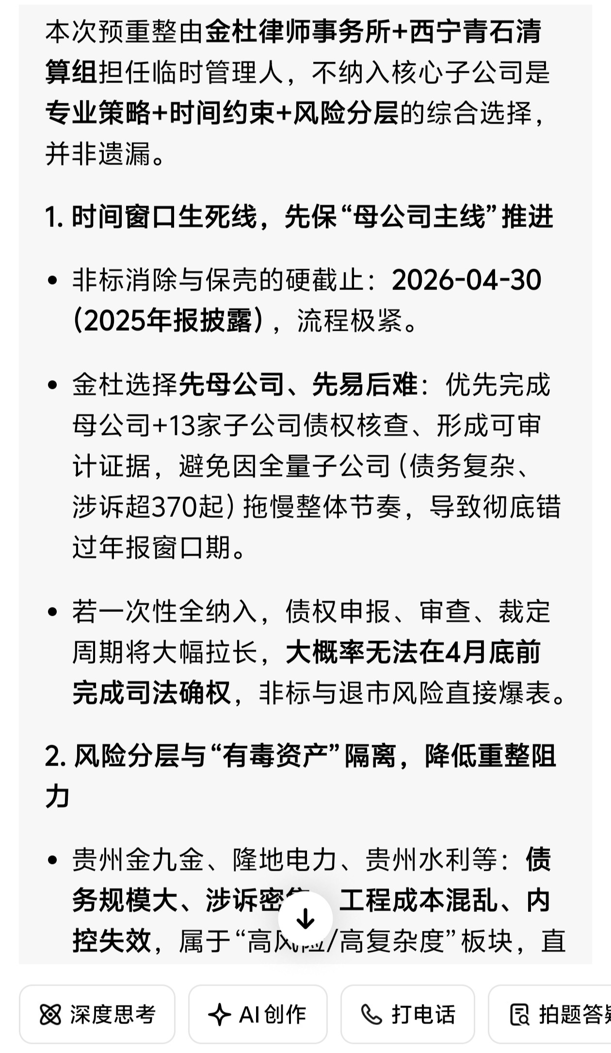 目前金杜主导的正平重整路线为“先主线、后扩围”的方式推进。