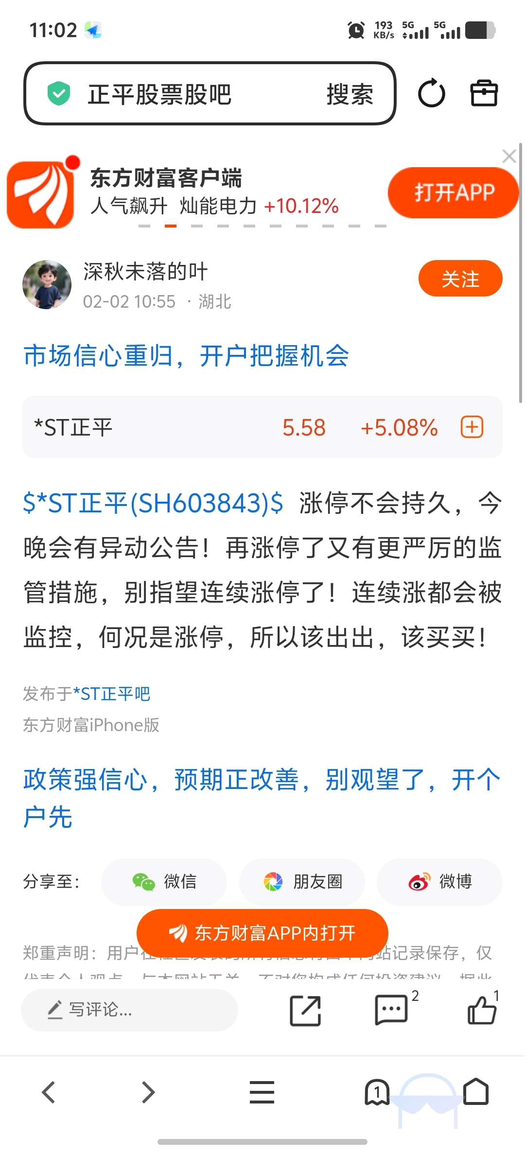 温馨提示: 1.根据《证券法》规定,禁止编造、传播虚假信息或者误导性信息,扰乱证券市场;2.用户在本社区发表的所有资料、言论等仅代表个人观点,与本网站立场无关,不对您构成任何投资建议。用户应基于自己的独立判断,自行决定证券投资并承担相应风险。《东方财富社区管理规定》