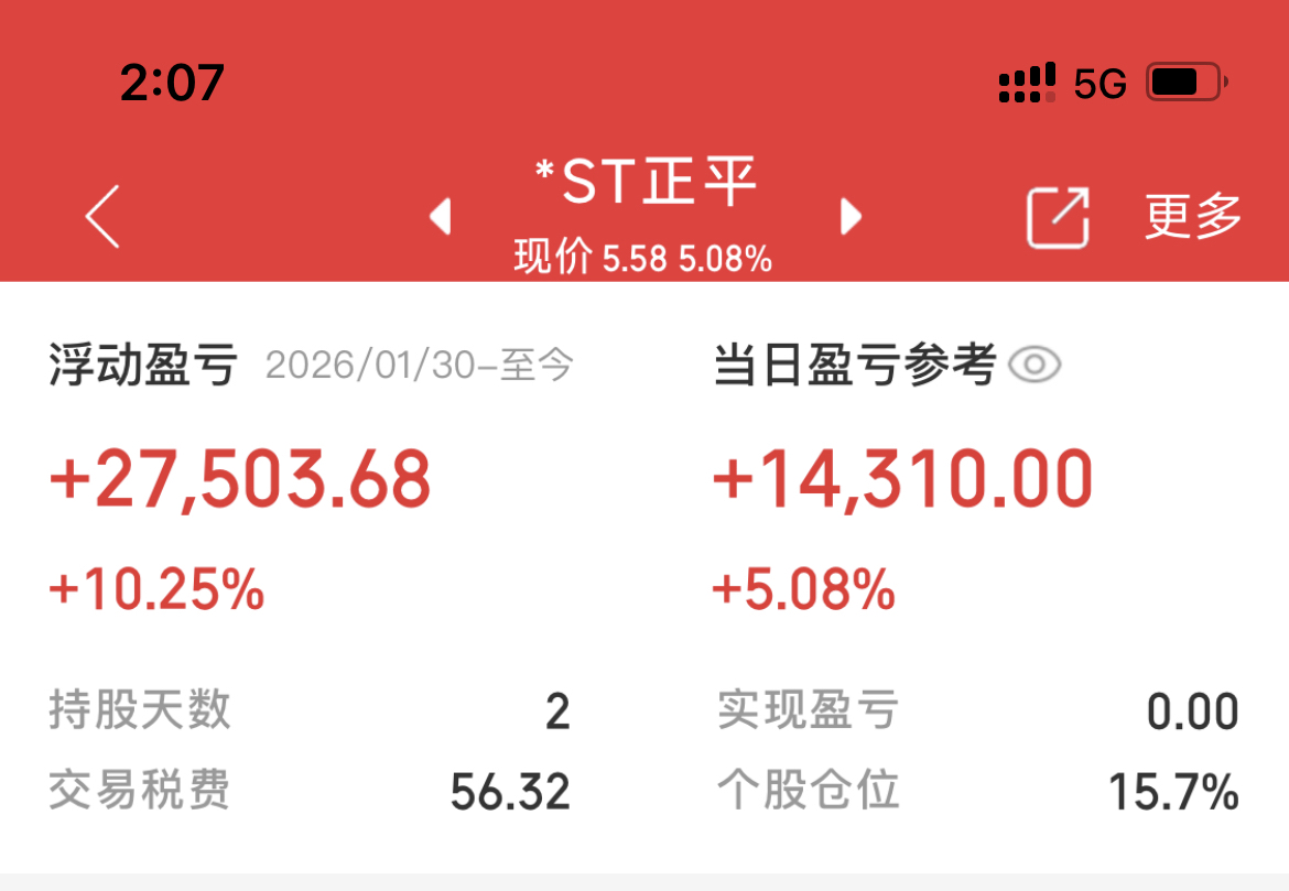 $*ST正平(SH603843)$ 买少了,不求翻倍,弥补一下万方的亏损就行
