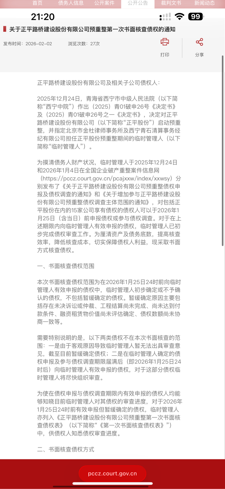 温馨提醒:重整网有消息,有序推进中~