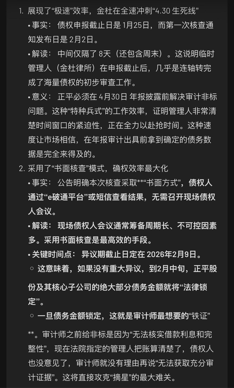 1. 账快算清了: 2月9日异议期结束后,债务底数将基本落定。