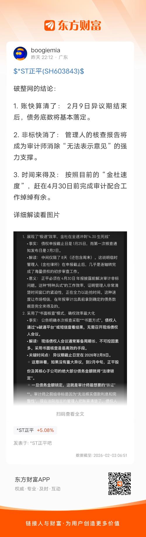 1. 账快算清了: 2月9日异议期结束后,债务底数将基本落定。