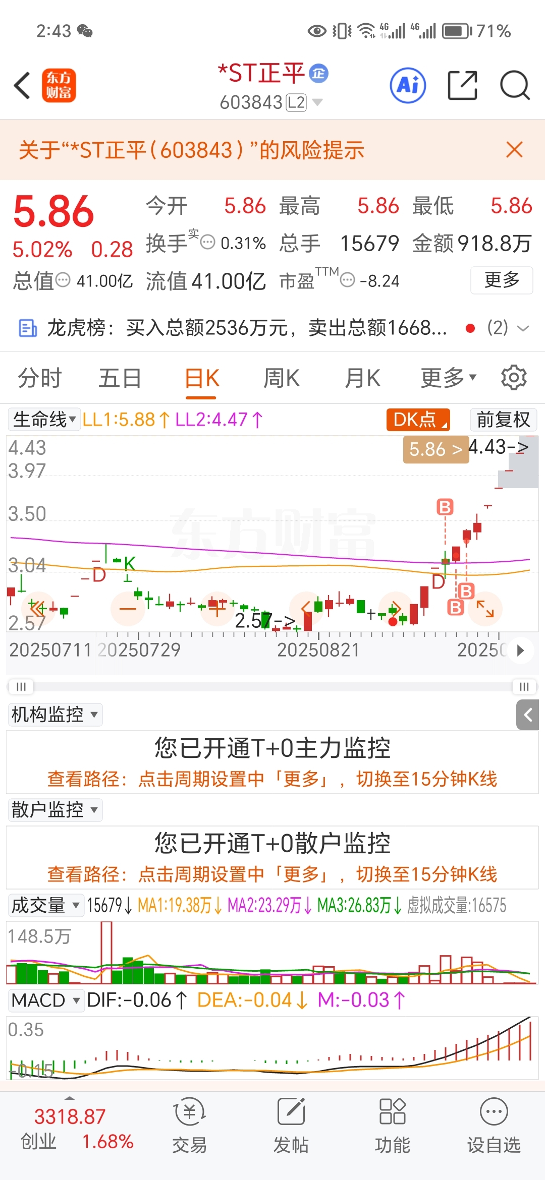 $*ST正平(SH603843)$ 这怎么和九月份一样呢 一卡一天,系统坏了吗
