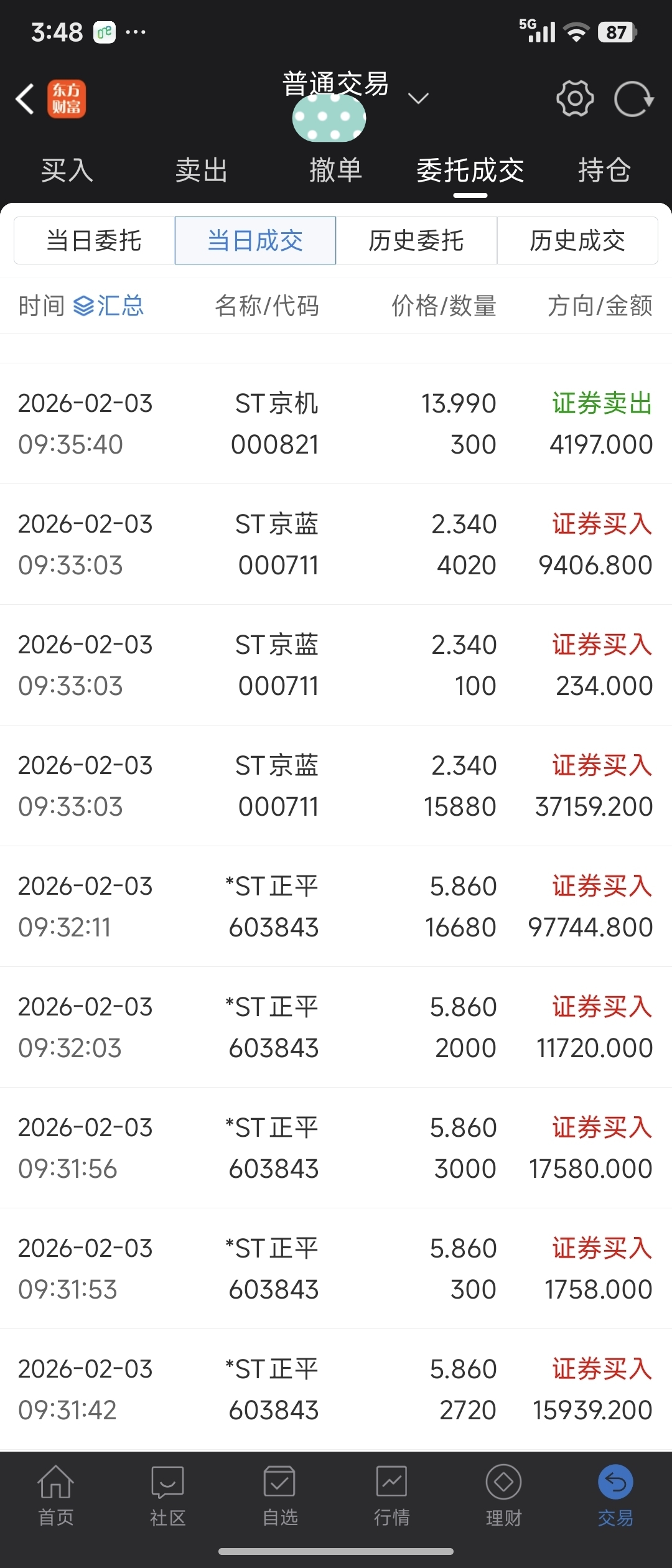 $*ST正平(SH603843)$ 早点顶板还是能进去,我昨天16:15:01埋单,今天9:32就成交了