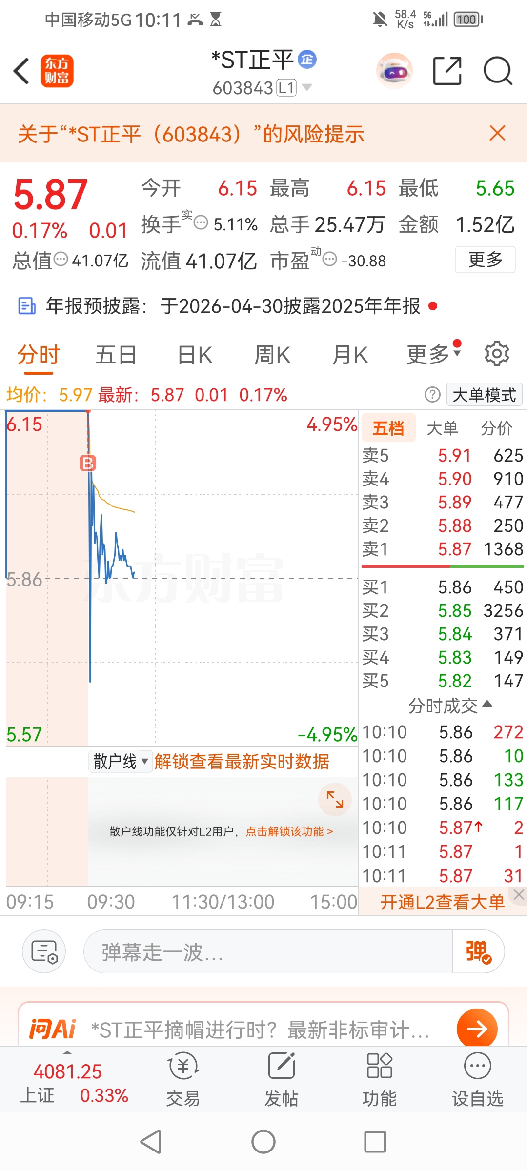 $*ST正平(SH603843)$ 打板1000股,亏了三百多!真是服了!买进来就炸板了!