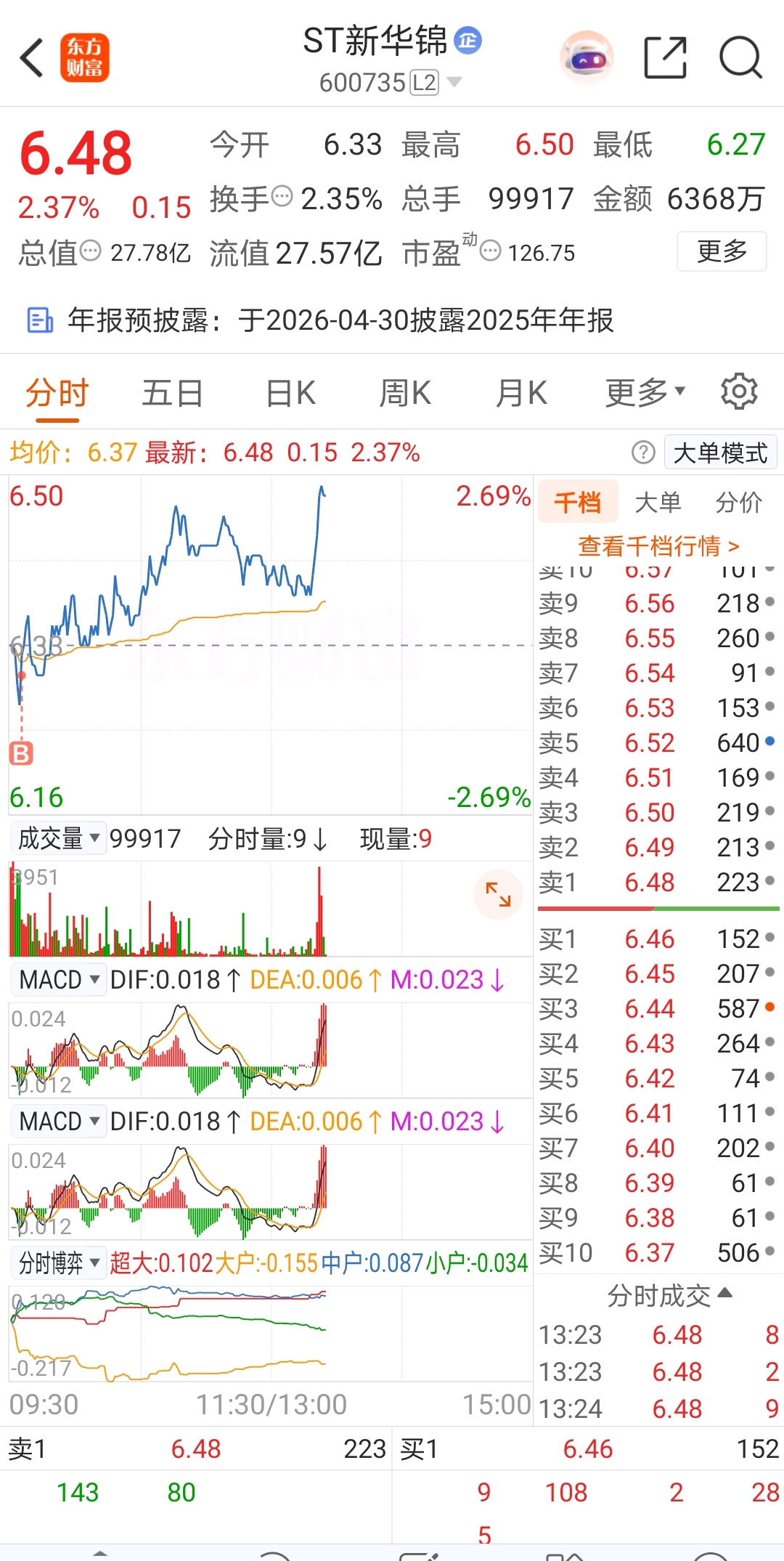 $*ST正平(SH603843)$ $ST新华锦(SH600735)$ 昨天和早上干新华锦了,没有资金干正平了,我等招募投资人,应该下周就会公告了,好不容易又搞了一点资金,跌停就加仓,净资产正就值一个板嘛