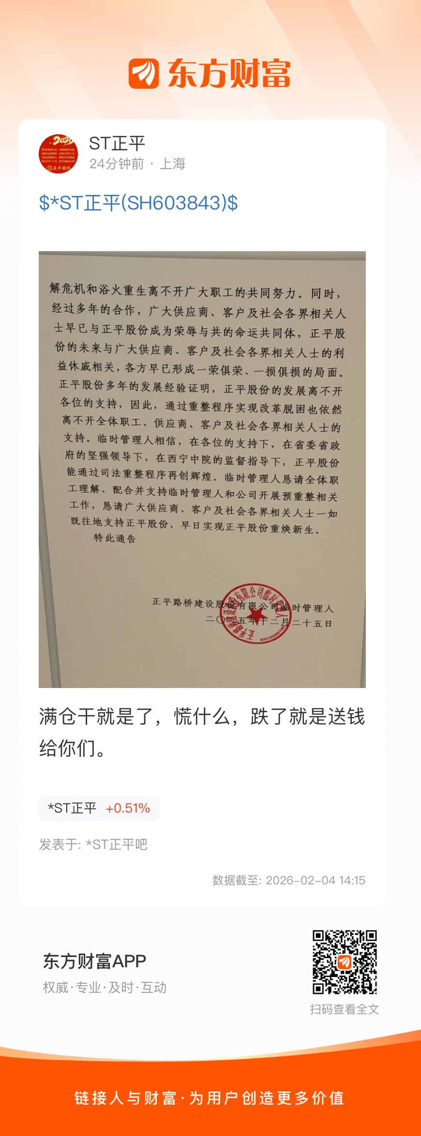 温馨提示: 1.根据《证券法》规定,禁止编造、传播虚假信息或者误导性信息,扰乱证券市场;2.用户在本社区发表的所有资料、言论等仅代表个人观点,与本网站立场无关,不对您构成任何投资建议。用户应基于自己的独立判断,自行决定证券投资并承担相应风险。《东方财富社区管理规定》
