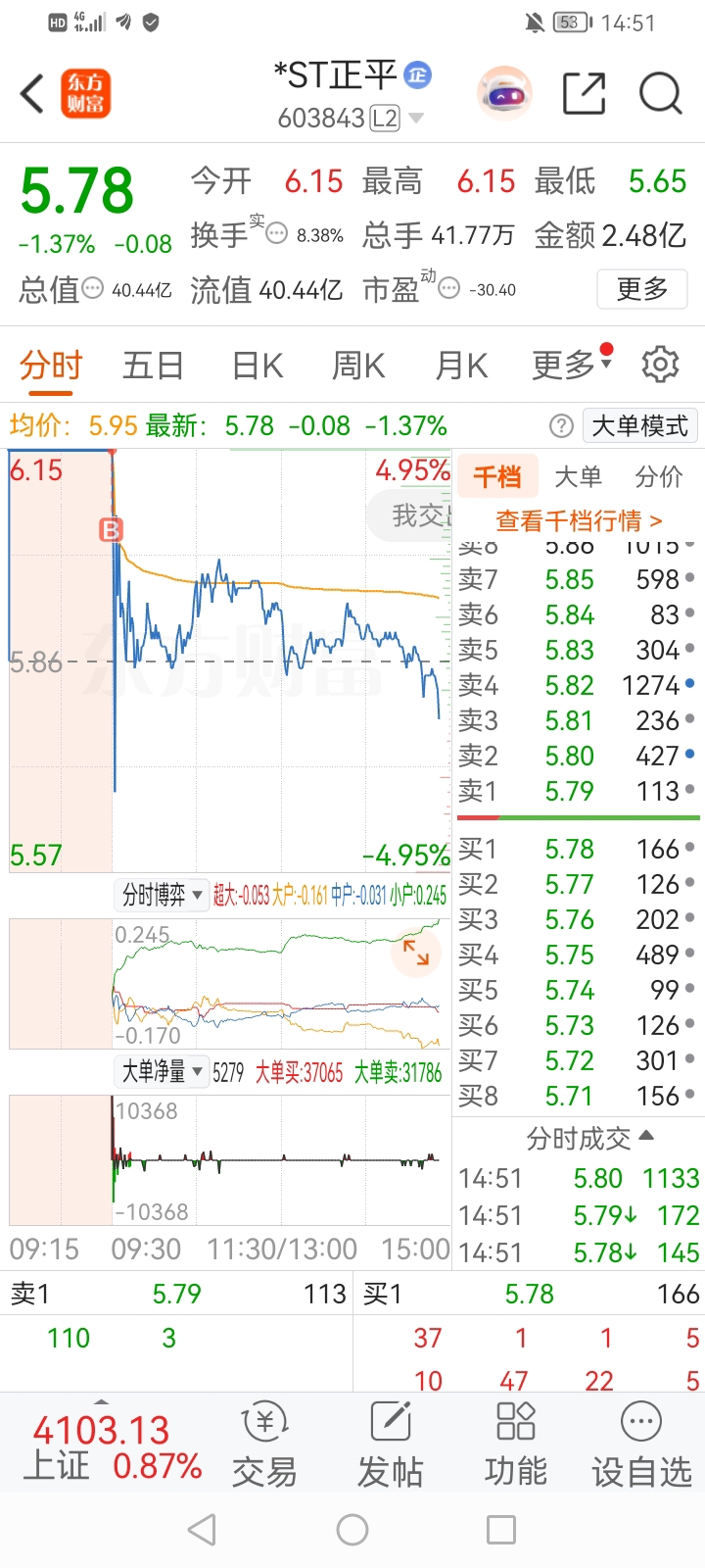 $*ST正平(SH603843)$ 半仓打板被挂山顶了,亏麻了,一天七个点没有了!