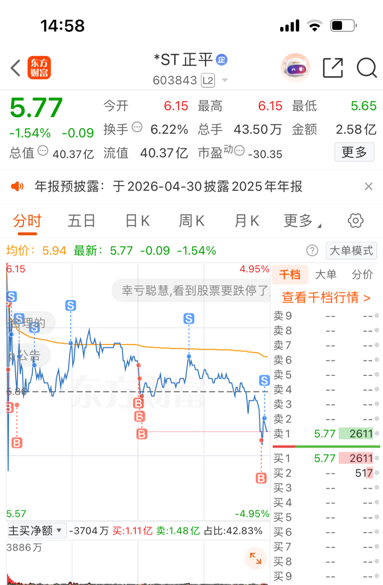 $*ST正平(SH603843)$ 这玩意儿不T都不行