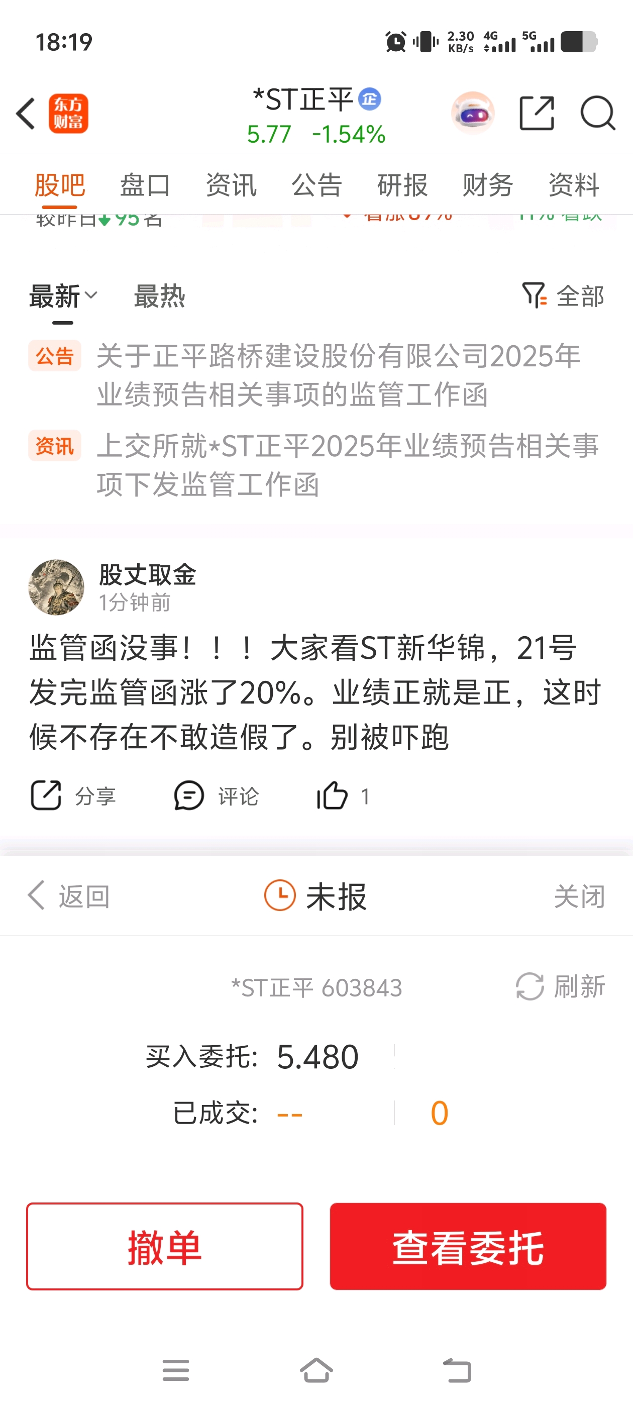 $*ST正平(SH603843)$ 谢谢,明天你们用力挂!