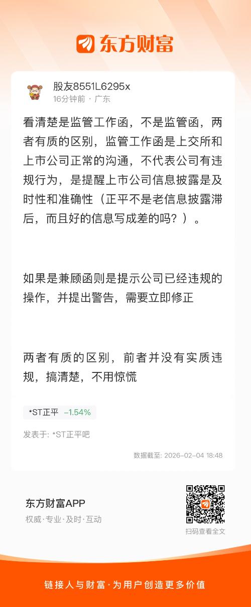 看清楚是监管工作函,不是监管函,两者有质的区别,监管工作函是上交所和上市公司正常的沟通,不代表公司有违规行为,是提醒上市公司信息披露是及时性和准确性(正平不是老信息披露滞后,而且好的信息写成差的吗?)。