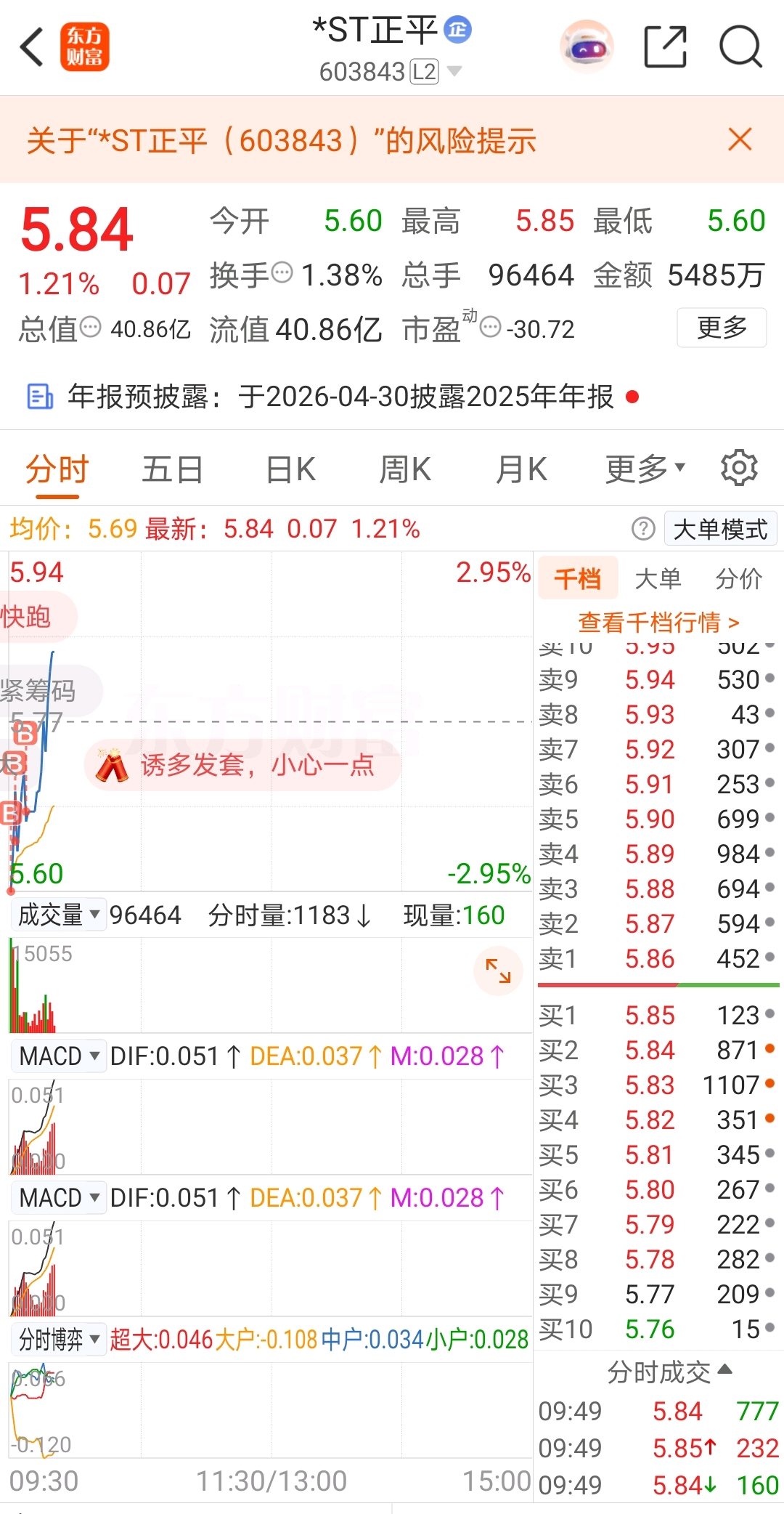 $*ST正平(SH603843)$ 我又打满了!怎么办,要不要做T呢!中迪都涨停了顶板进不去了