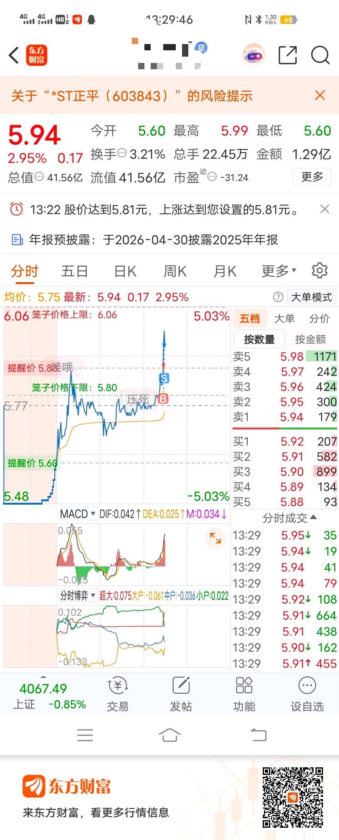 $*ST正平(SH603843)$ 哈哈哈,一条华子到手,感谢平哥