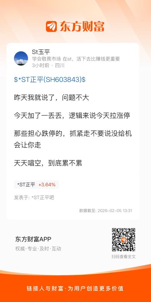 温馨提示: 1.根据《证券法》规定,禁止编造、传播虚假信息或者误导性信息,扰乱证券市场;2.用户在本社区发表的所有资料、言论等仅代表个人观点,与本网站立场无关,不对您构成任何投资建议。用户应基于自己的独立判断,自行决定证券投资并承担相应风险。《东方财富社区管理规定》