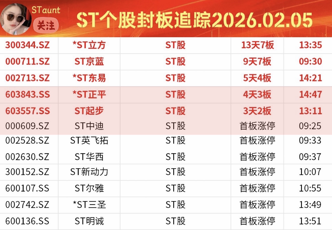 ST个股封板追踪B