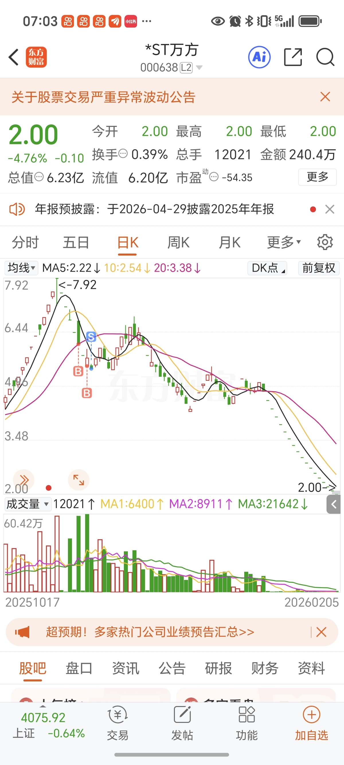 $*ST正平(SH603843)$ 突然看了万方,啥情况,我还亏了不少走的